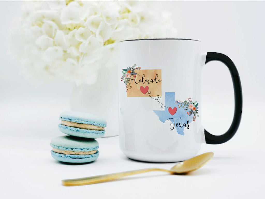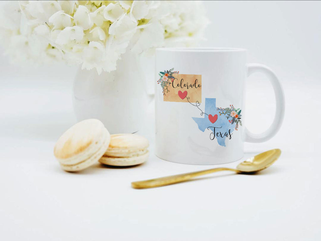 Enjoy drinking coffee with a long distance loved one with this Texas Colorado mug. You may be miles away, but the love in your hearts will always stay.