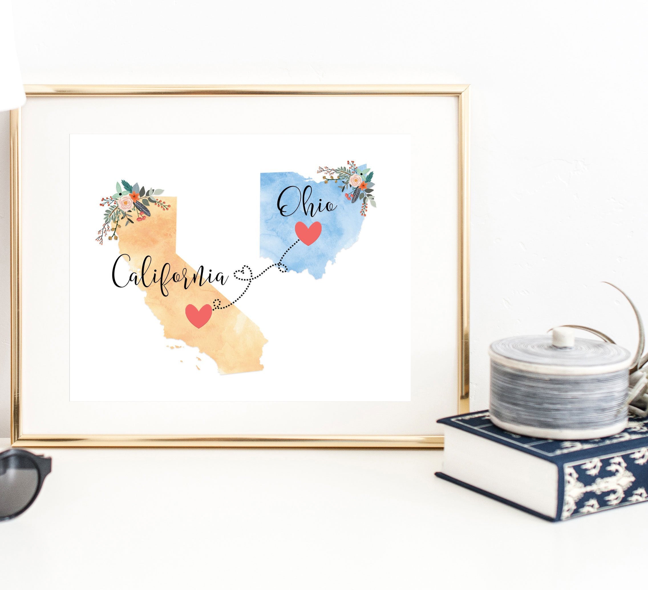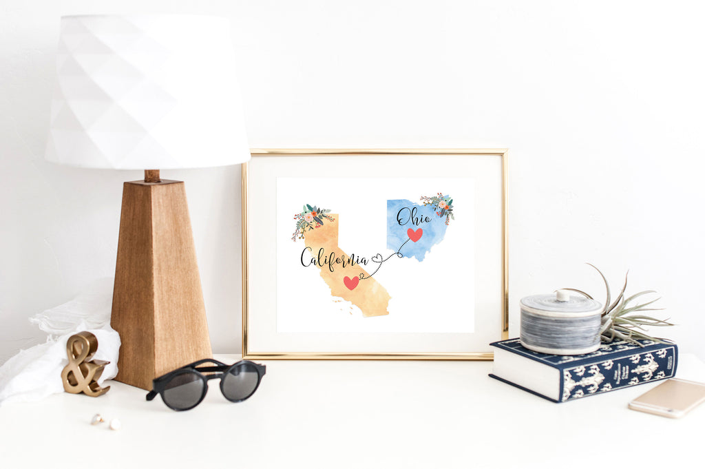 This California and Ohio print will be right at home on your wall or that of a long-distance friend or family member.