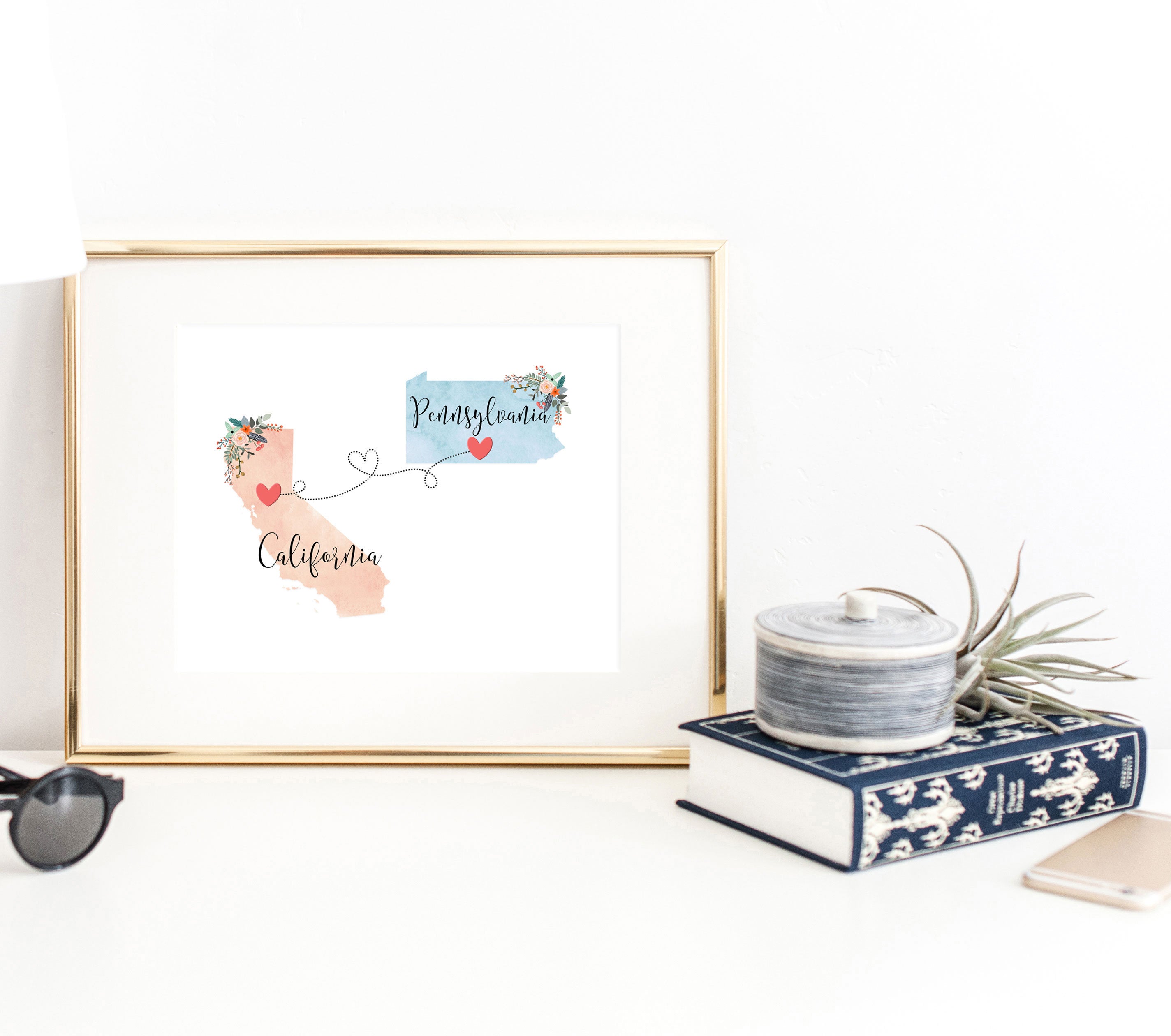 This California and Pennsylvania print will be right at home on your wall or that of a long-distance friend or family member.