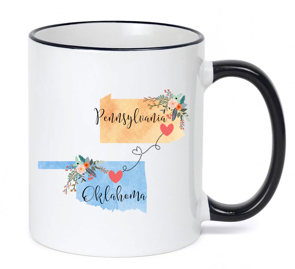 Pennsylvania Oklahoma Mug / Oklahoma Pennsylvania Gift / Pennsylvania to Oklahoma Coffee Mug / Oklahoma to Pennsylvania Cup 11 or 15 oz