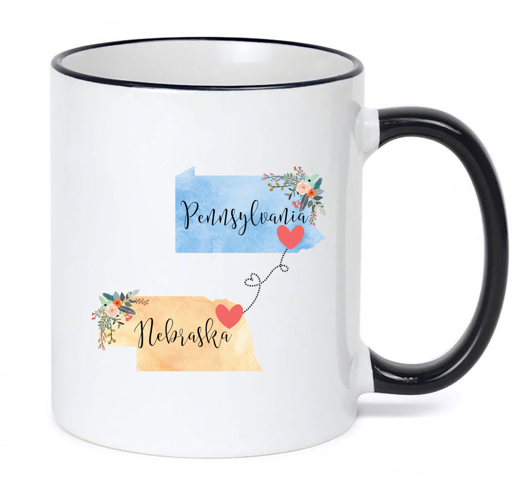 Pennsylvania Nebraska Mug / Nebraska Pennsylvania Mug / Pennsylvania to Nebraska Gift / Nebraska to Pennsylvania Cup 11 or 15 oz