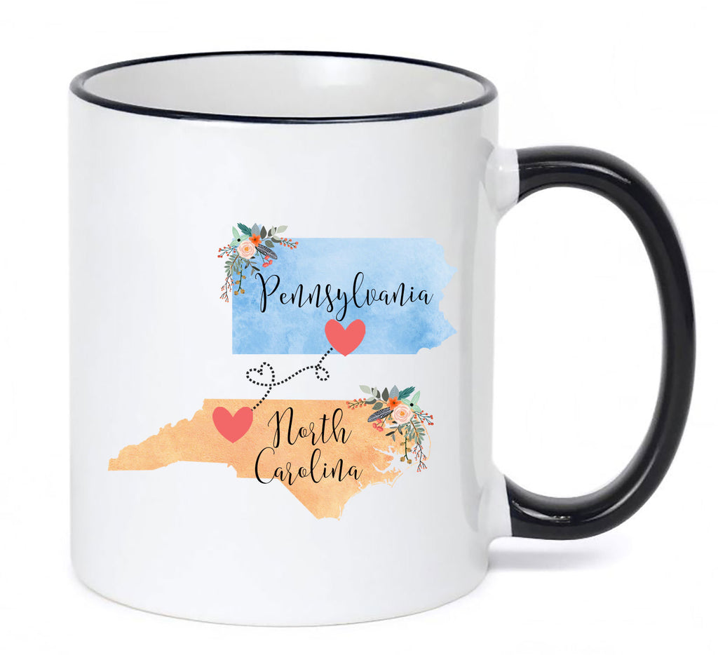 Pennsylvania North Carolina Mug / North Carolina Pennsylvania Gift / Pennsylvania to North Carolina Coffee Mug 11 or 15 oz
