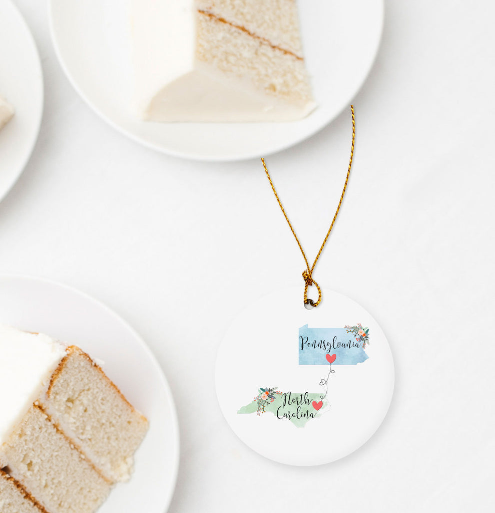 Pennsylvania North Carolina Ornament / DOUBLE SIDED Ornament / Pennsylvania Christmas Ornament / Missing You Gift / North Carolina Gift