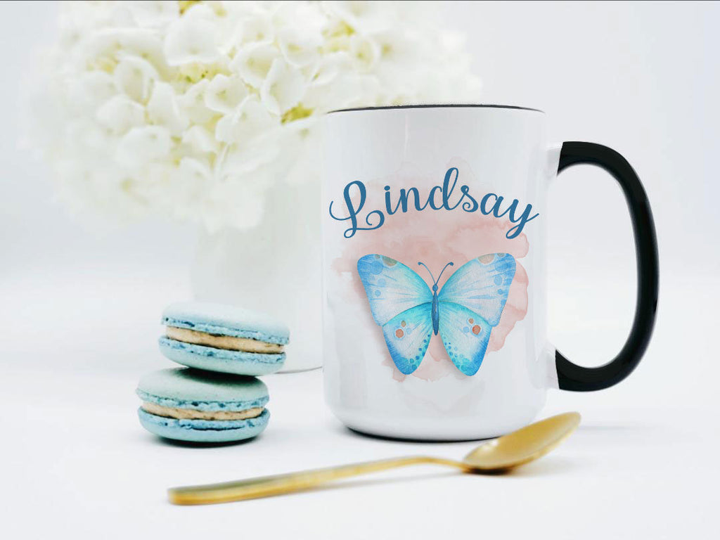 Personalized Butterfly Mug / Butterfly Gifts / Blue Butterfly Name Mug / Butterfly Gift / Butterfly Coffee Mug / Beautiful Mug Feminine Gift