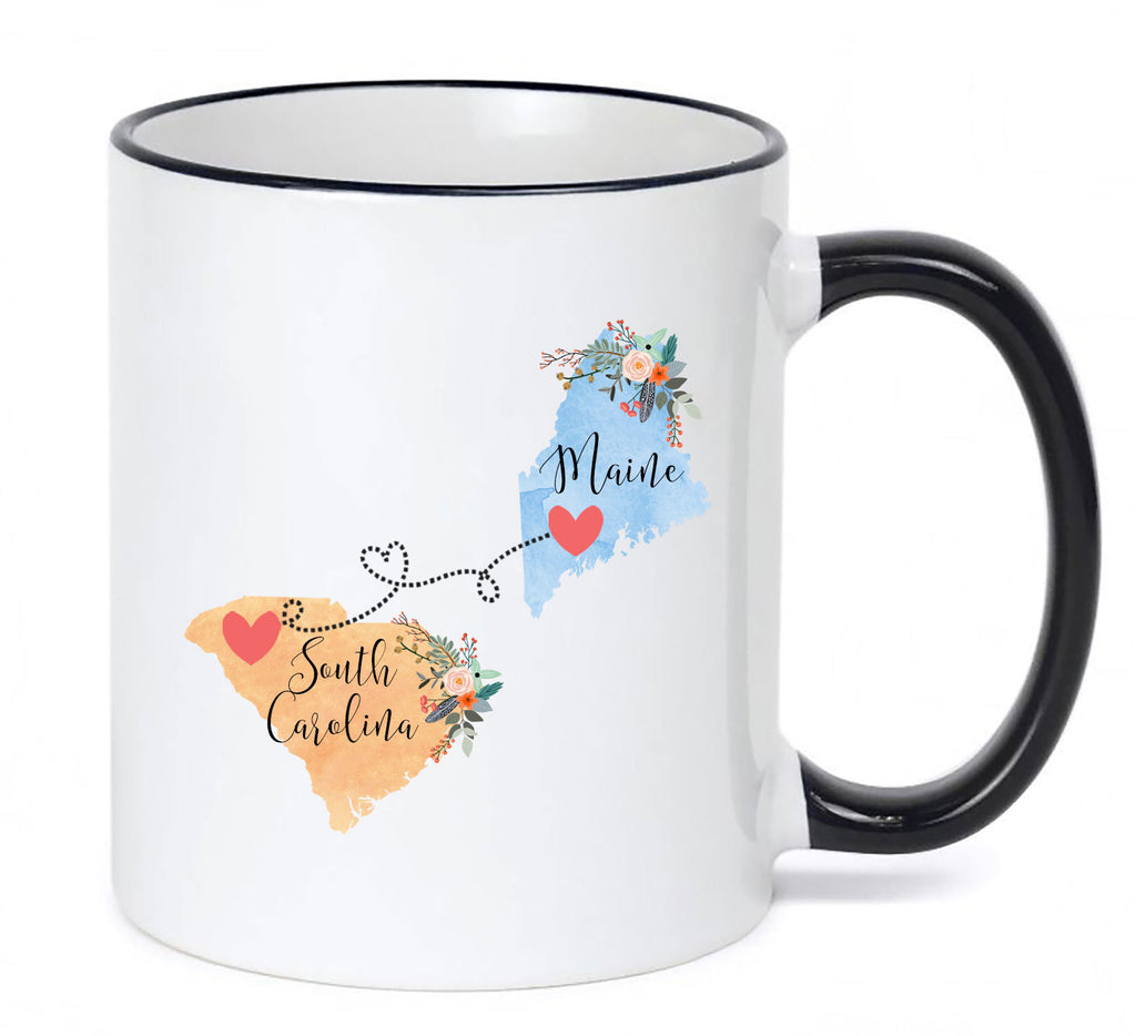 South Carolina Maine Mug / Maine South Carolina Mug / South Carolina to Maine Gift / Maine to South Carolina Gift 11 or 15 oz