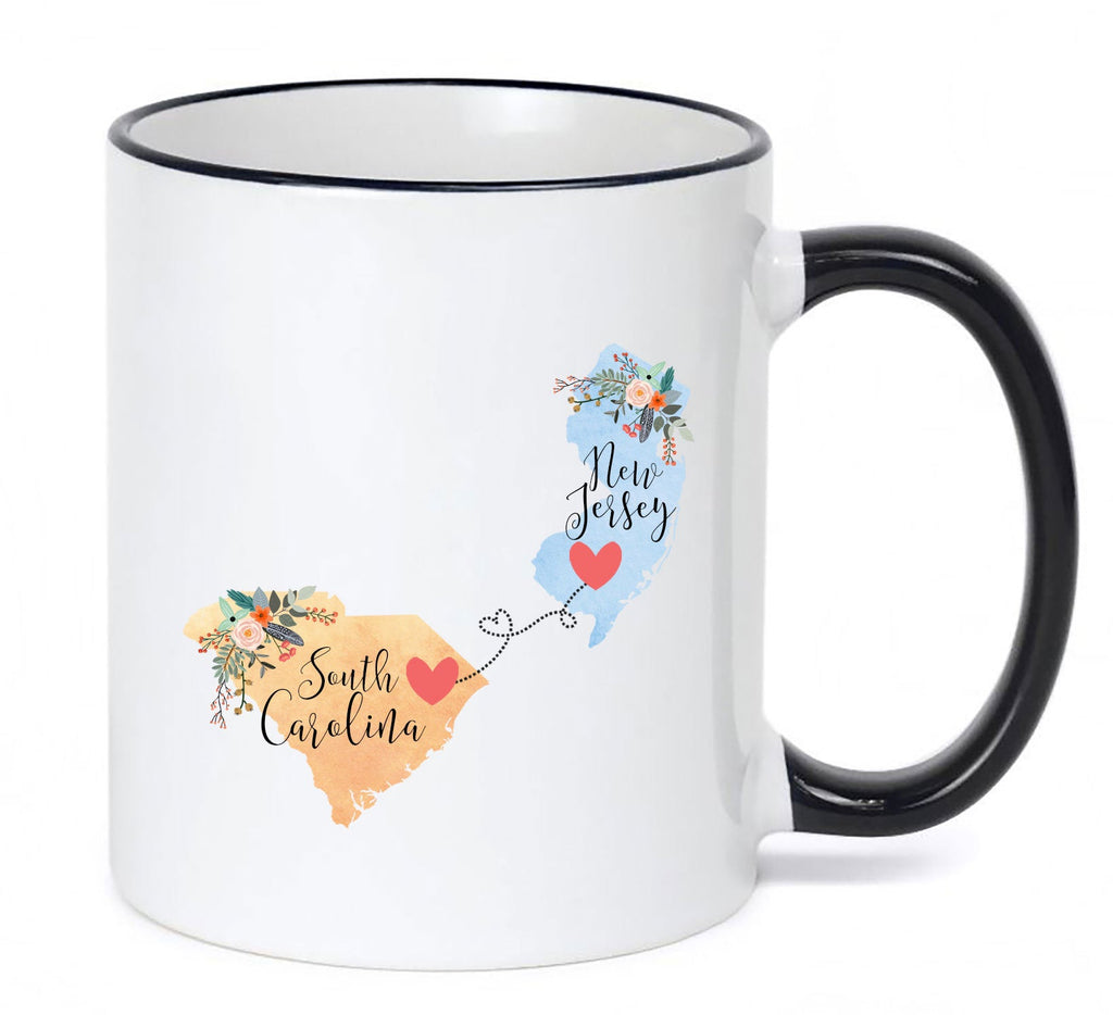 South Carolina New Jersey Mug / New Jersey South Carolina Mug / South Carolina to New Jersey Gift / NJ to South Carolina Gift / 11 or 15 oz