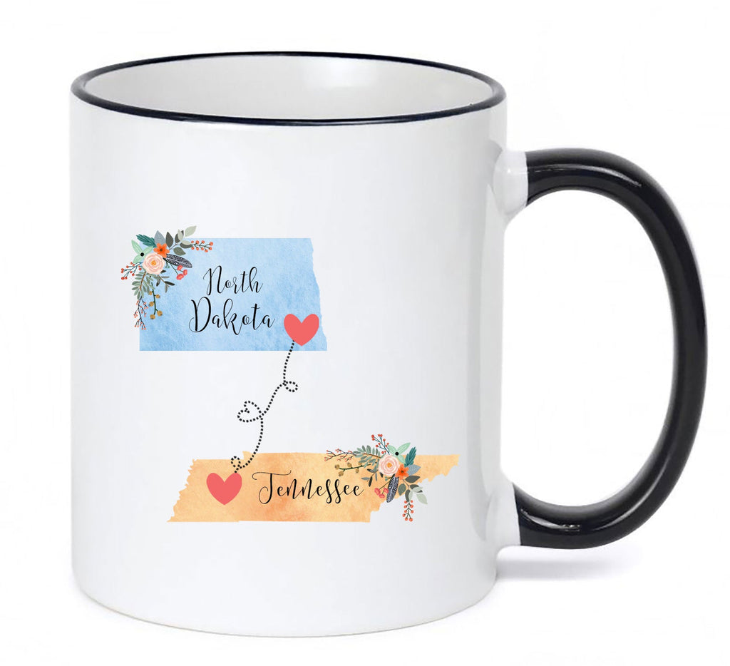Tennessee North Dakota Mug / North Dakota Tennessee Mug / Tennessee to North Dakota Gift / North Dakota to Tennessee Gift / 11 or 15 oz