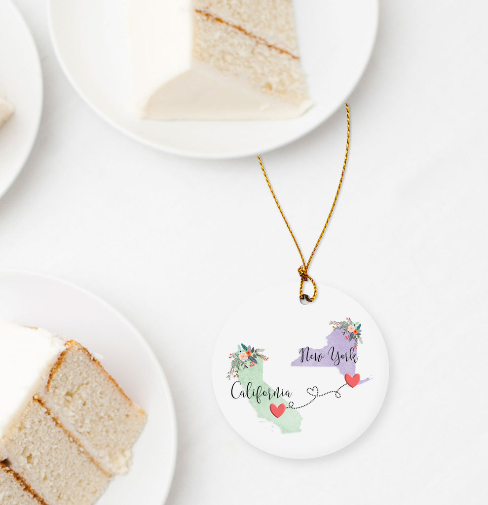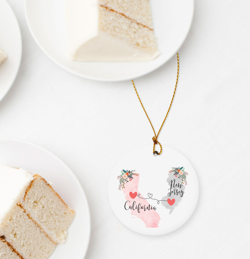 California New Jersey Ornament / DOUBLE SIDED Ornament / California Christmas Ornament / Missing You Gift / New Jersey Hostess Gift