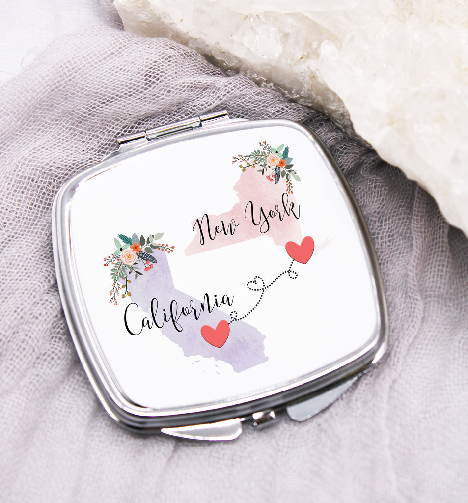 California New York Mirror / State Compact / State Mirror / Two State Gifts / Best Friend Gift / Connected Hearts Gifts / Moving Away Gift