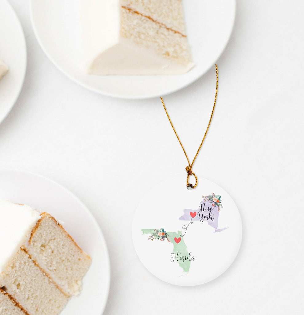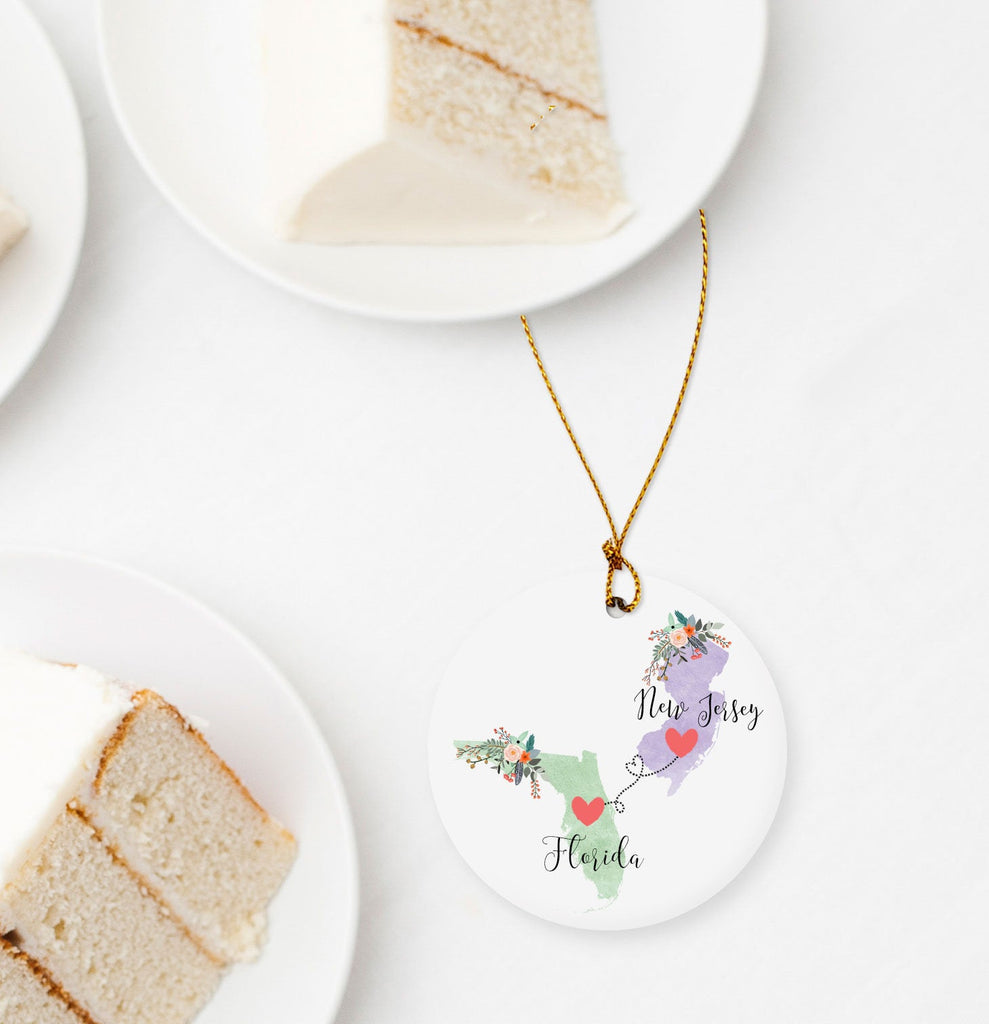 Florida New Jersey Ornament / DOUBLE SIDED Ornament / Florida Christmas Ornament / Missing You Gift / New Jersey Hostess Gift