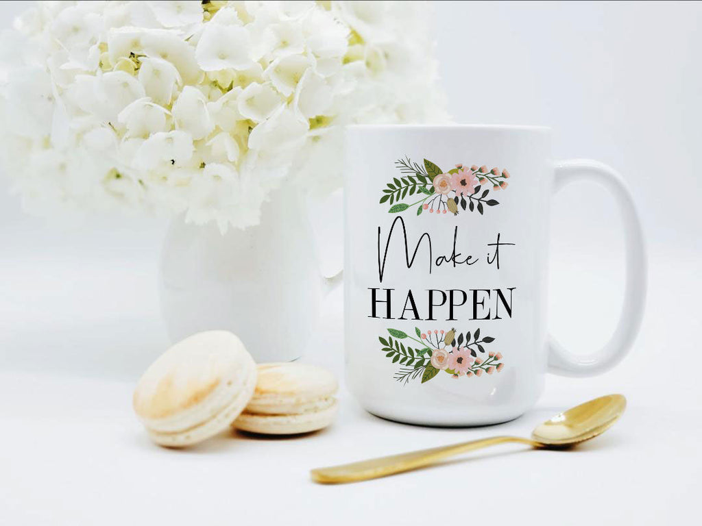 Goal Mugs / Make it Happen Mug / Motivational Mug / Entrepreneur Gift / New Business Gift / New Business Owner / Weight Loss Inspiration