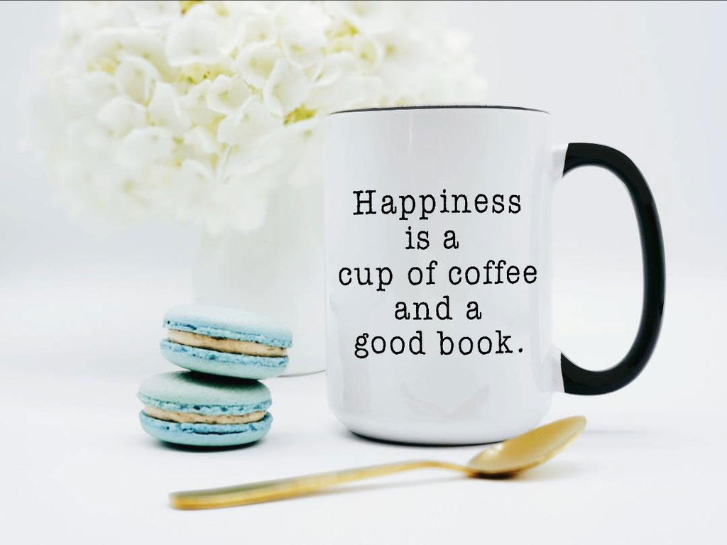 Gift for Book Lovers / Happiness Is a Cup of Coffee and a Good Book Mug / Literary Mug / Book Lovers Gift / Comfort Gift / Self-Care Gift