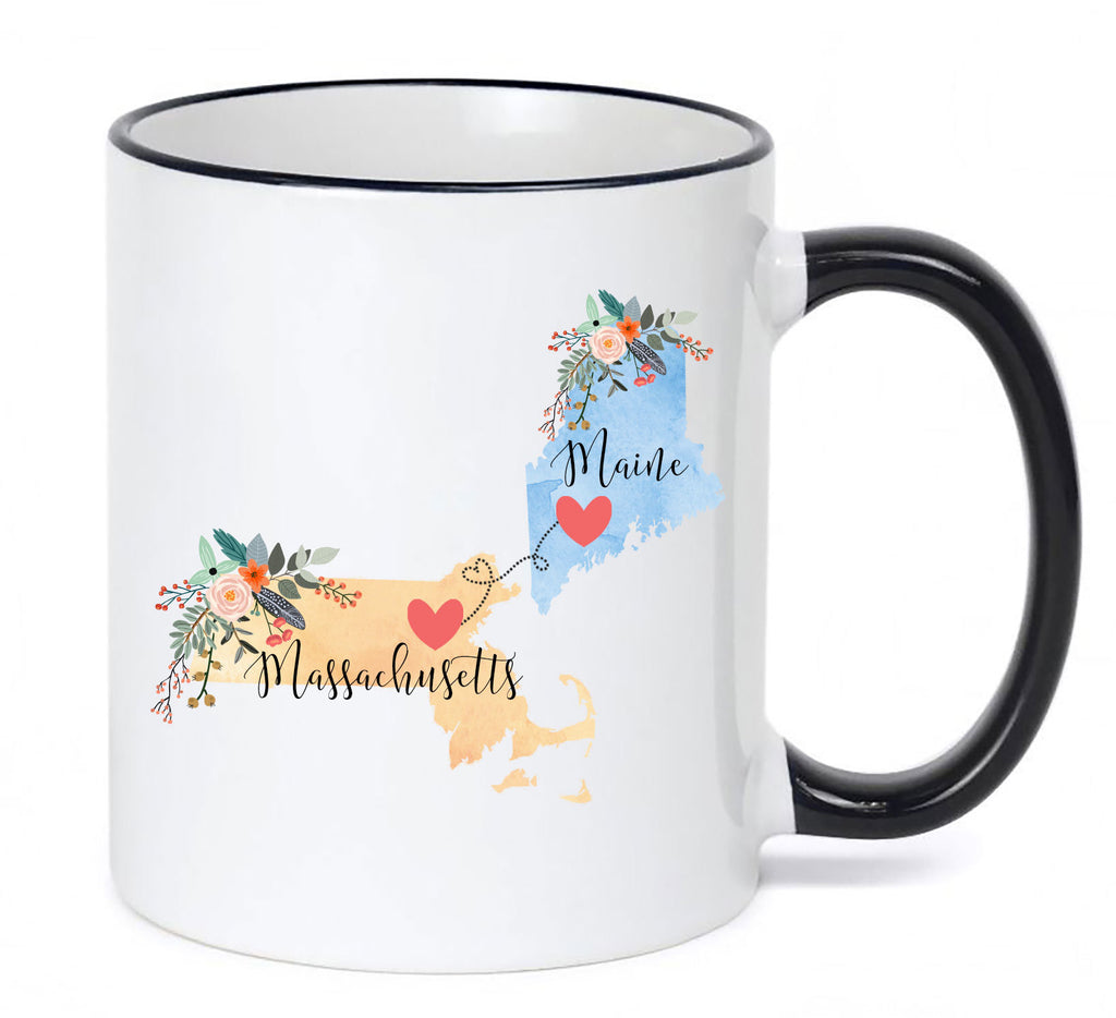 Maine Massachusetts Mug / Maine to Massachusetts Mug / Maine to Massachusetts Gift / Maine Massachusetts Coffee Cup / 11 or 15 oz