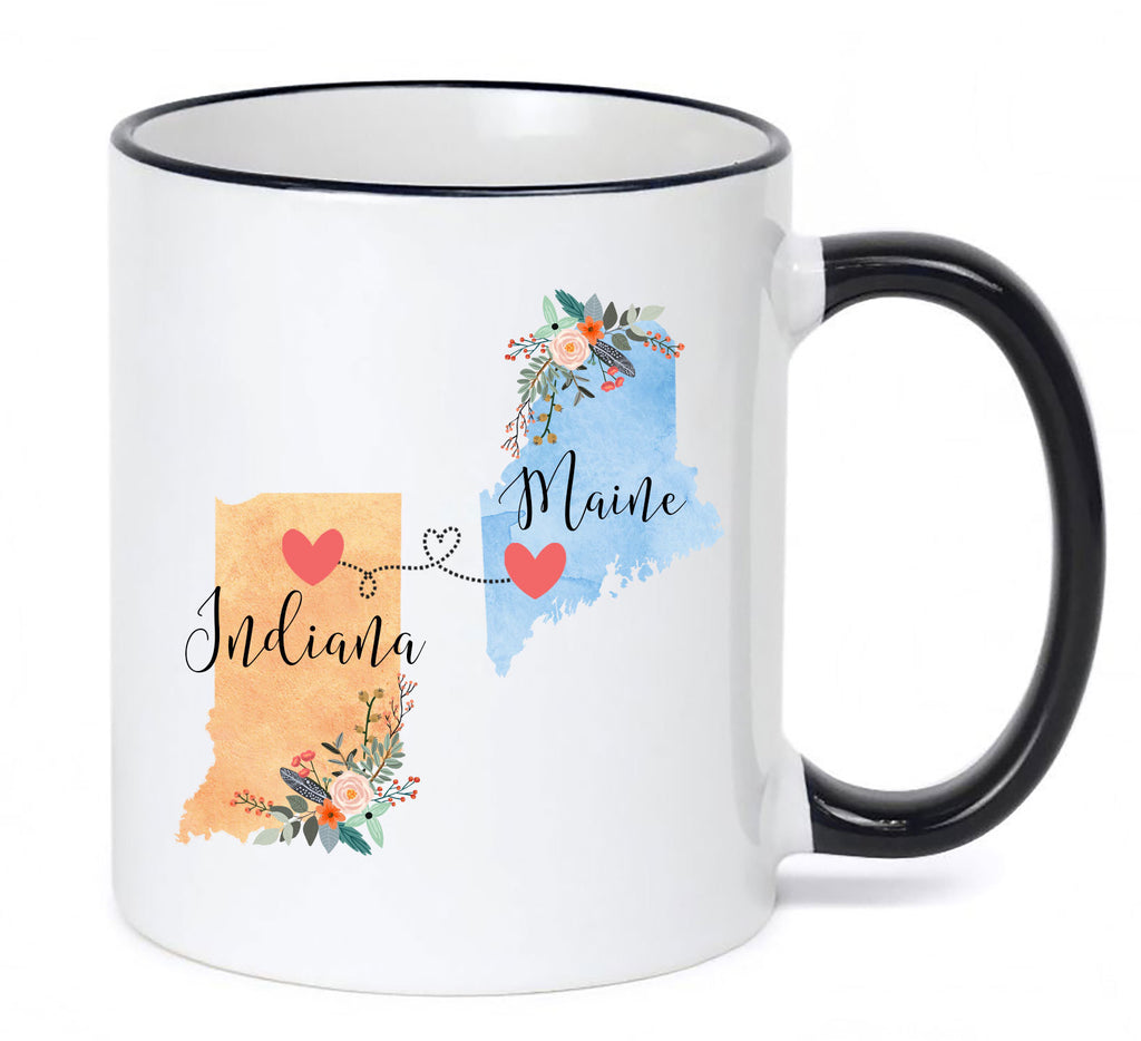Maine Indiana Mug / Maine to Indiana Mug / College Student Going Away/Going Away Gift/College Student Gift / 11 or 15 oz