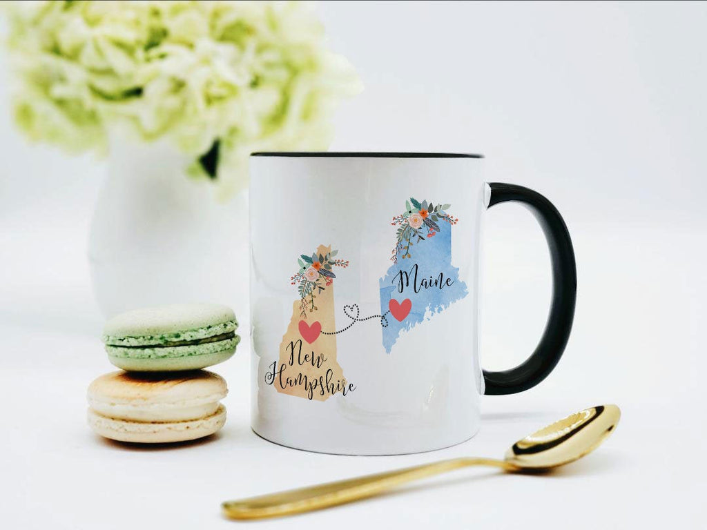 Maine New Hampshire Mug / New Hampshire Maine Coffee Mug / New Hampshire Gift / Missing You Gifts / State Love Mug / State to State Mug