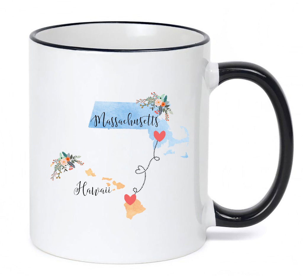 Massachusetts Hawaii Mug / Hawaii to Massachusetts Mug / Massachusetts to Hawaii Gift / MA to HI Gift / Summer Vacation Mug / 11 or 15 oz