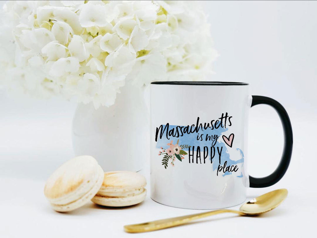 Massachusetts Is My Happy Place Mug / Massachusetts Coffee Mug / Massachusetts Souvenir / Massachusetts Gifts Vacation / 11 or 15 oz