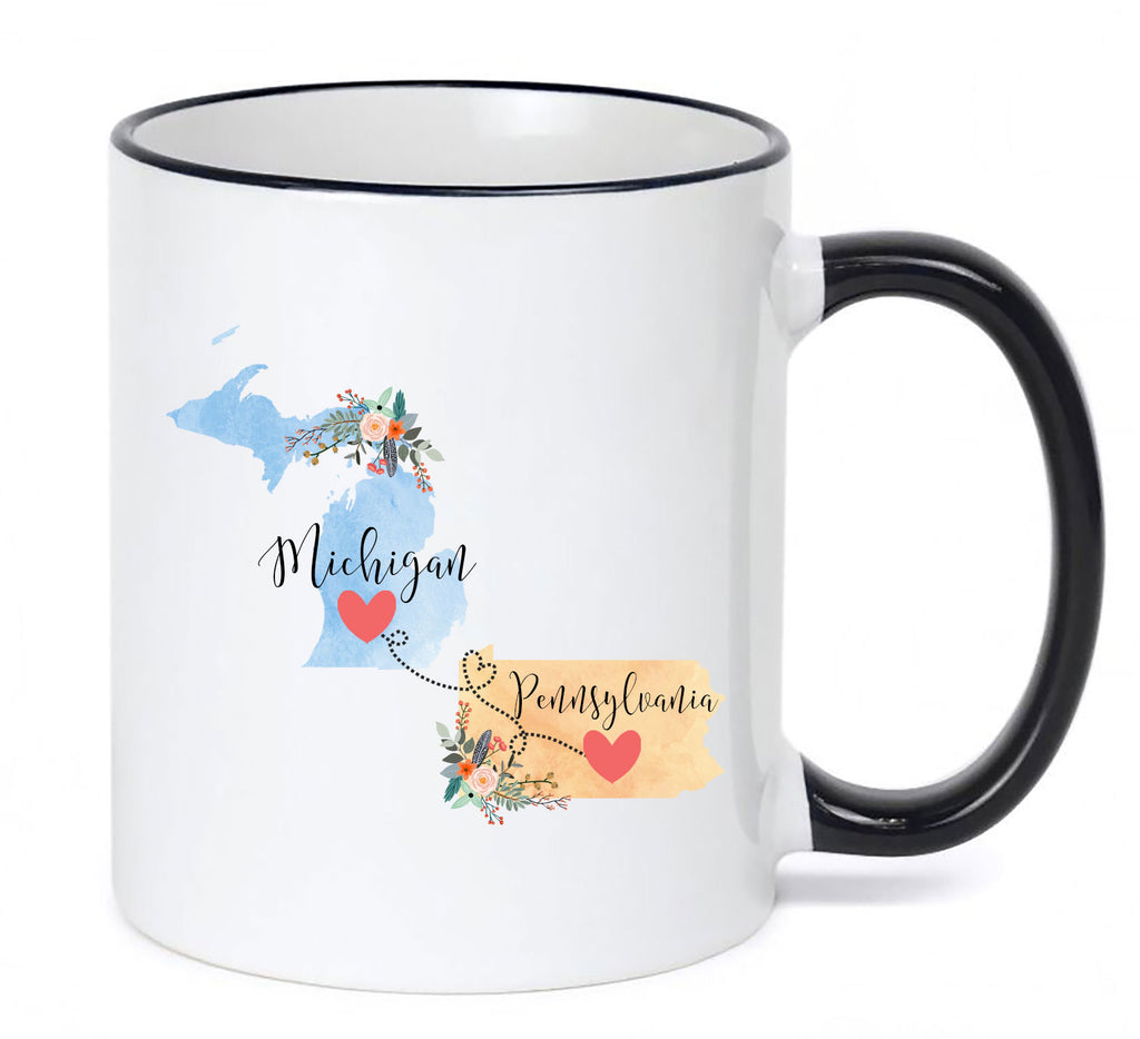 Michigan Pennsylvania Mug / Michigan to Pennsylvania Gift / Michigan to Pennsylvania Coffee Mug / Michigan Pennsylvania Cup 11 or 15 oz