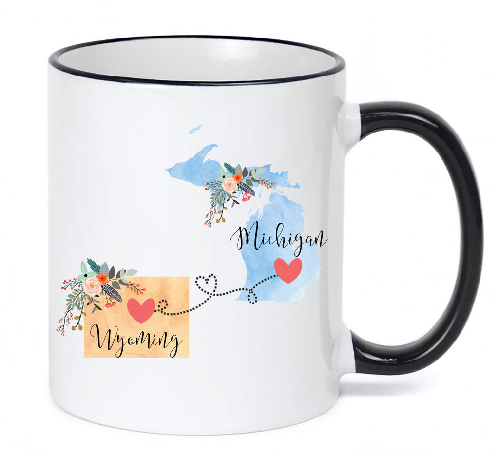 Michigan Wyoming Mug / Wyoming Michigan Mug / Wyoming to Michigan Gift / Michigan to Wyoming Coffee Cup / 11 or 15 oz