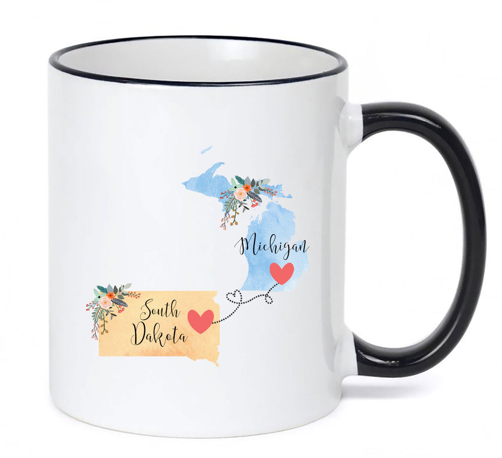Michigan South Dakota Mug / South Dakota Michigan Mug / Michigan to South Dakota Gift / South Dakota to Michigan Coffee Cup / 11 or 15 oz