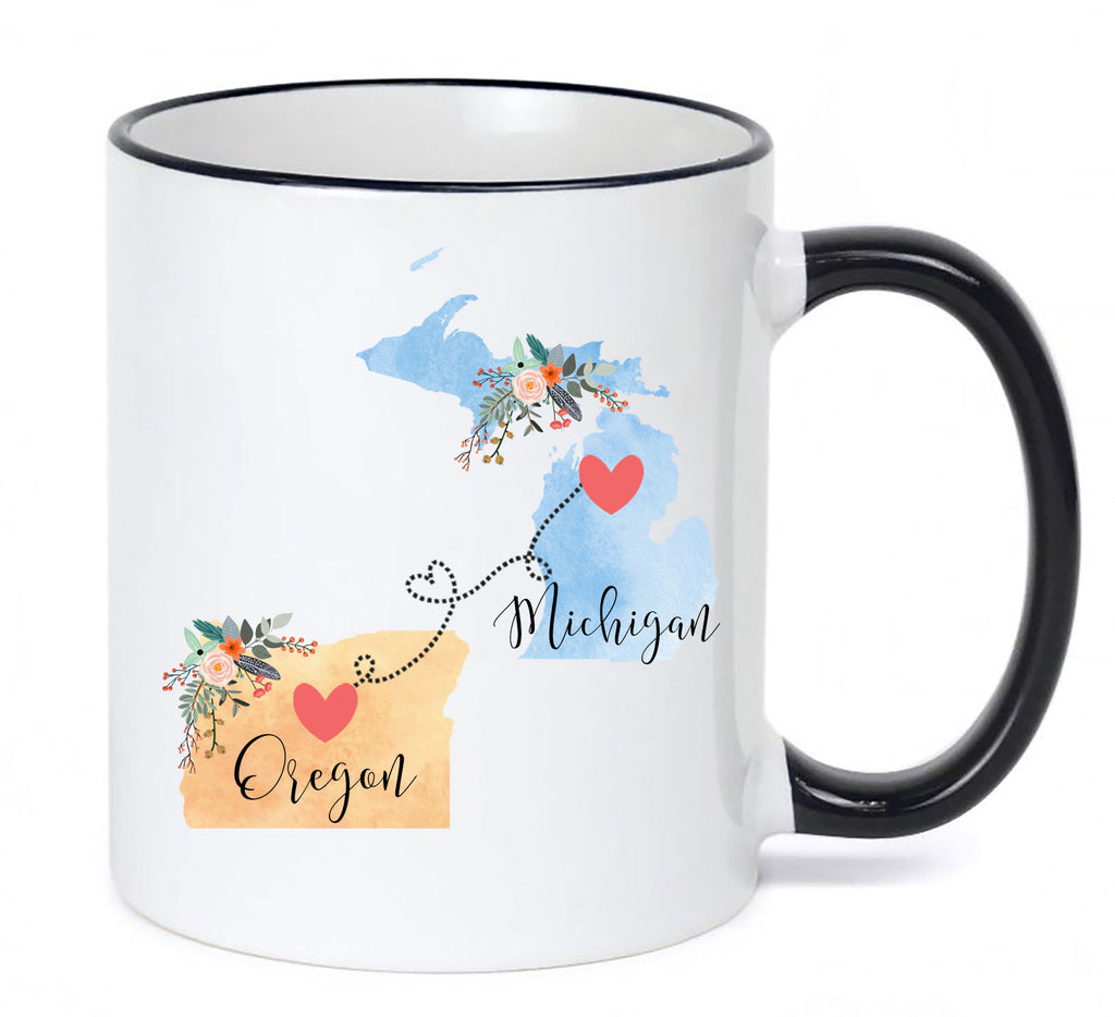 Michigan Oregon Mug / Oregon Michigan Mug / Michigan to Oregon Gift /Connected States Coffee Mug / Michigan Souvenir / 11 or 15 oz