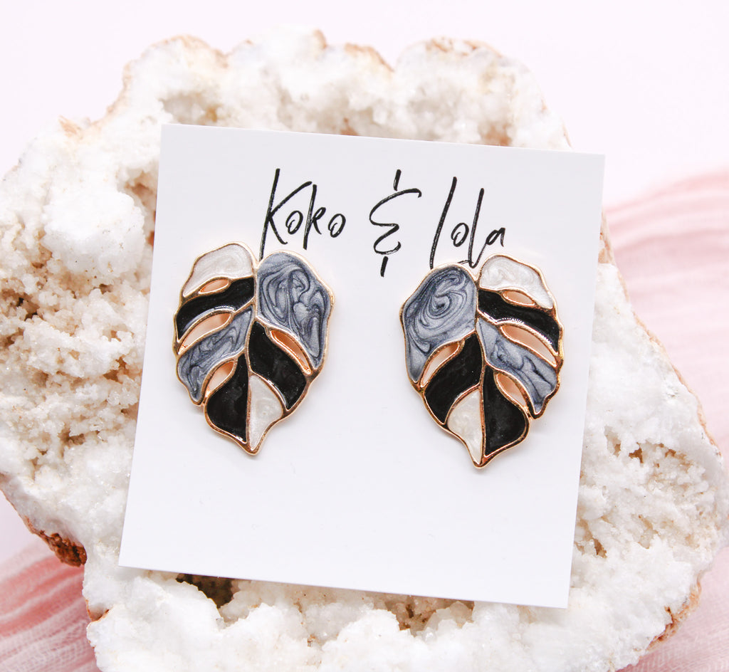 Multi Black/Grey Enamel Tropical Leaf Earrings