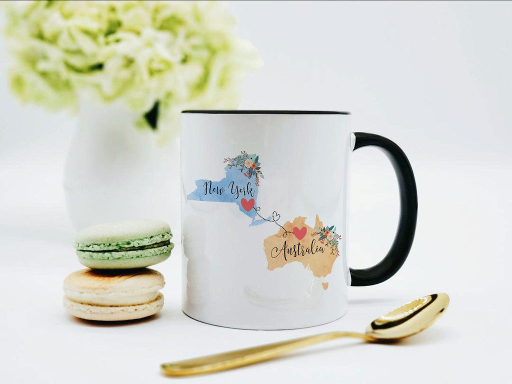 New York Australia Mug / Australia New York Mug / Missing You Mug / Heart Line Mug / Connected Heart Mug / Map Mug / 11 or 15 oz