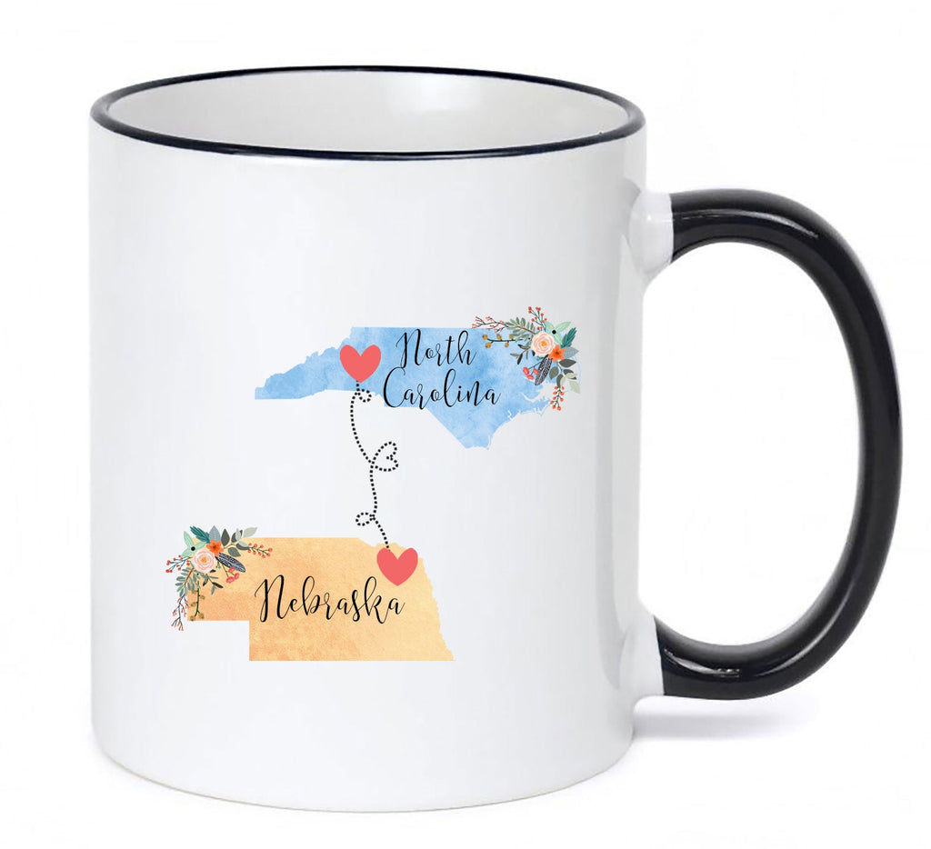 North Carolina Nebraska Mug / Nebraska North Carolina Mug / North Carolina to Nebraska Gift / Nebraska to NC Coffee Cup 11 or 15 oz