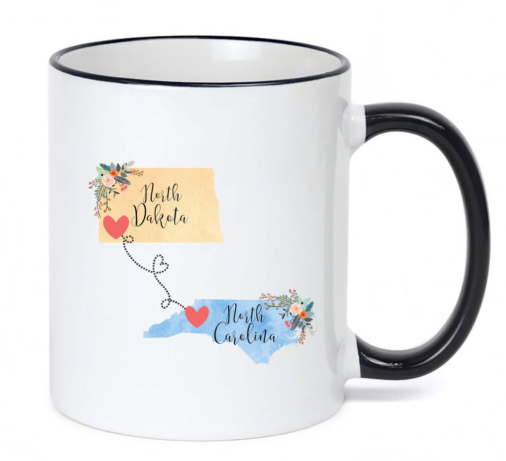 North Carolina North Dakota Mug / North Dakota North Carolina Mug / North Carolina to North Dakota Gift / ND to NC Coffee Cup / 11 or 15 oz