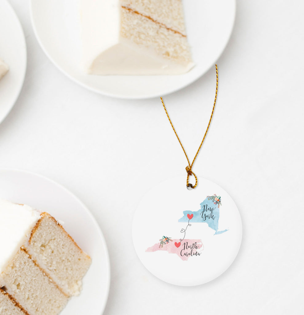North Carolina New York Ornament / DOUBLE SIDED Ornament / North Carolina Christmas Ornament / Missing You Gift / New York Hostess Gift