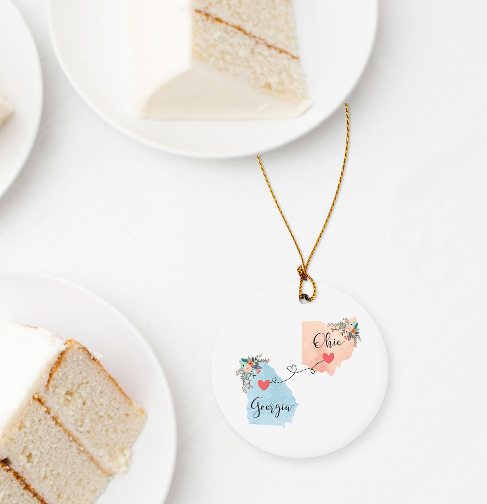 Ohio Georgia Ornament / DOUBLE SIDED Ornament / Ohio Christmas Ornament / Missing You Gift / Georgia Hostess Gift