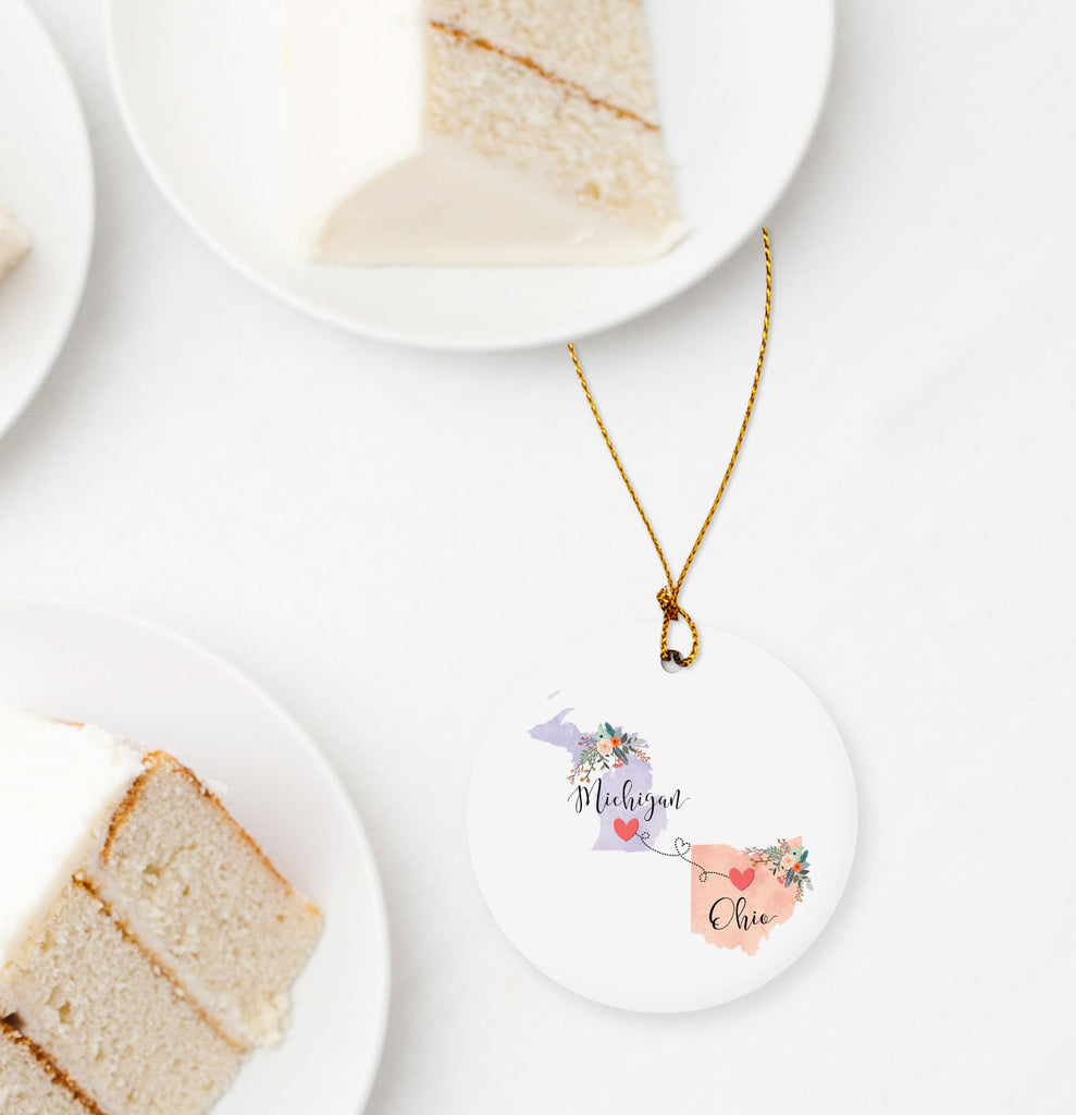 Ohio Michigan Ornament / DOUBLE SIDED Ornament / Ohio Christmas Ornament / Missing You Gift / Michigan Hostess Gift