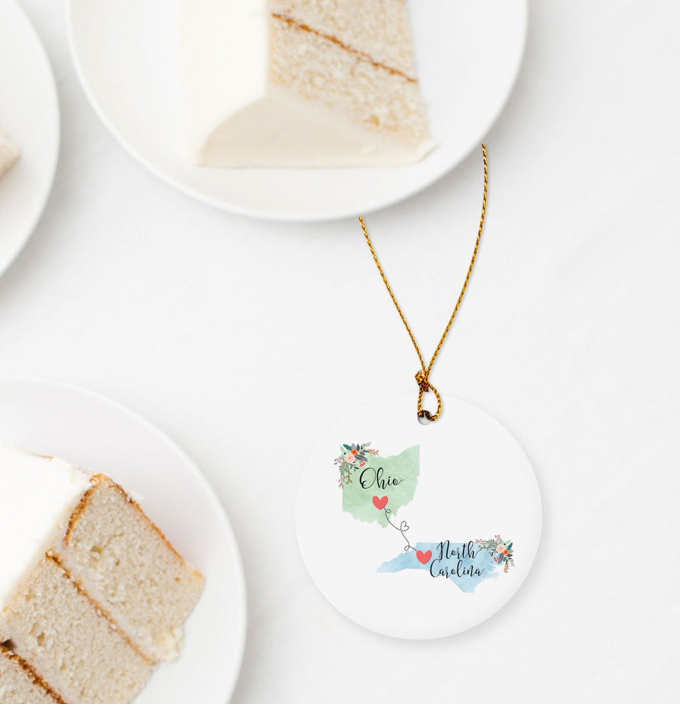 Ohio North Carolina Ornament / DOUBLE SIDED Ornament / Ohio Christmas Ornament / Missing You Gift / North Carolina Hostess Gift