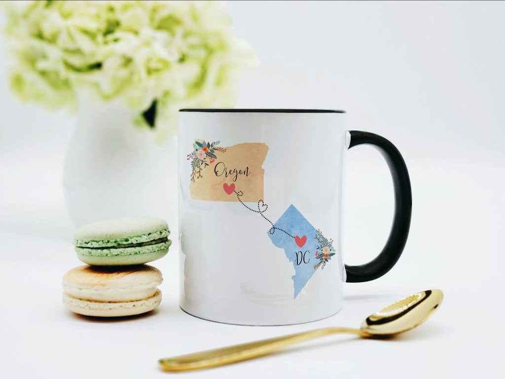 Oregon DC Mug / Washington DC Oregon Mug / Moving to DC Gift / Oregon Washington dc Mug / Moving to Oregon Gift / Connected Hearts Mug