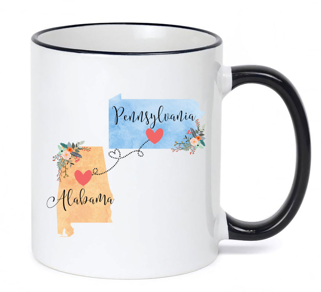 Pennsylvania Alabama Mug / Alabama Pennsylvania Mug / Pennsylvania to Alabama Gift / Alabama to Pennsylvania Coffee Cup / 11 or 15 oz