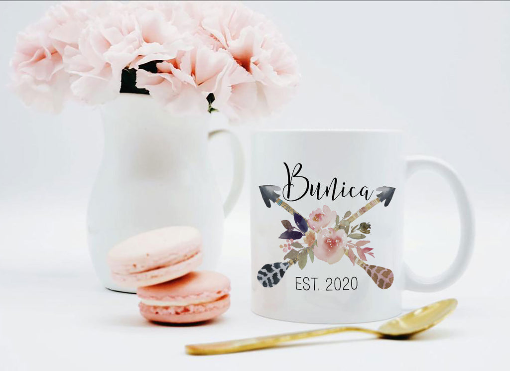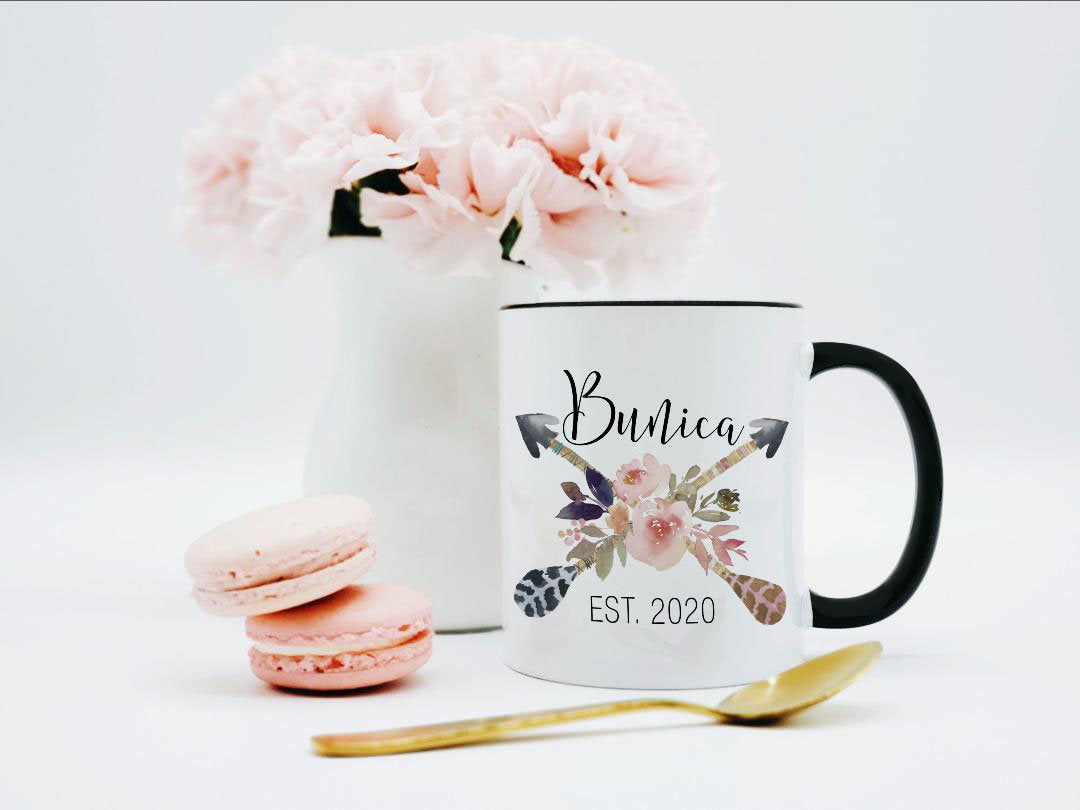Gorgeous floral mug, with "Bunica" and/or your choice of name. For example, I'm happy to put "Gigi," "Aunt," "Grams," etc. instead. I can also change the year to any year that suits you.