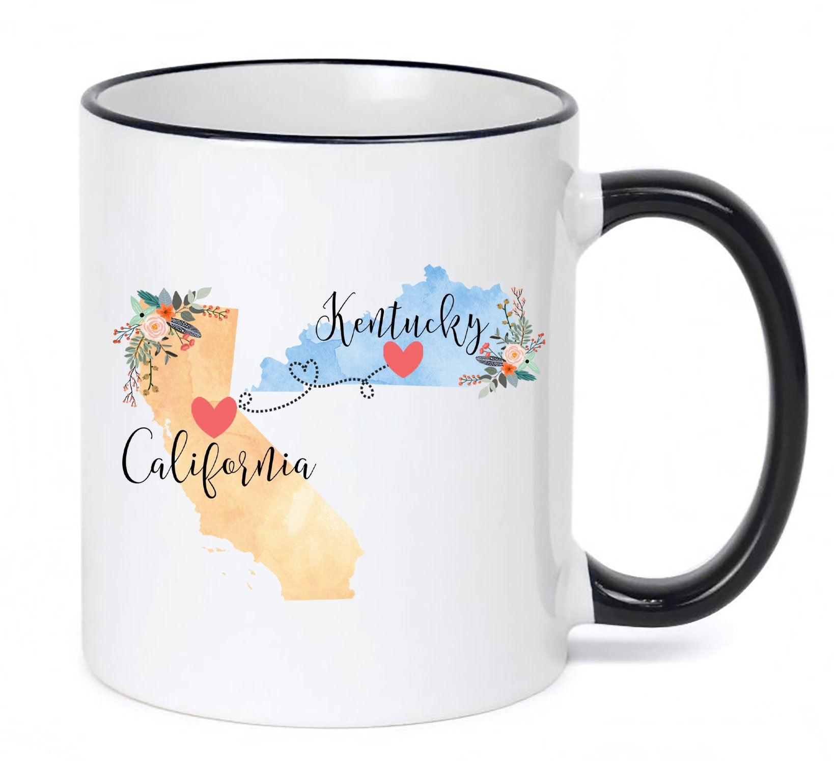 **No Delivery Dates Are Guaranteed. All shipping carriers are currently experiencing delays and transit times can be longer than normal. As a small business, we appreciate your patience and understanding that these circumstances are something that is out of our control. By purchasing this listing you are agreeing that you understand that the shipping date estimation may not be accurate.**California Kentucky Mug / Kentucky California Mug / California to Kentucky Gift / Kentucky to California Gift / 11 or 15 oz