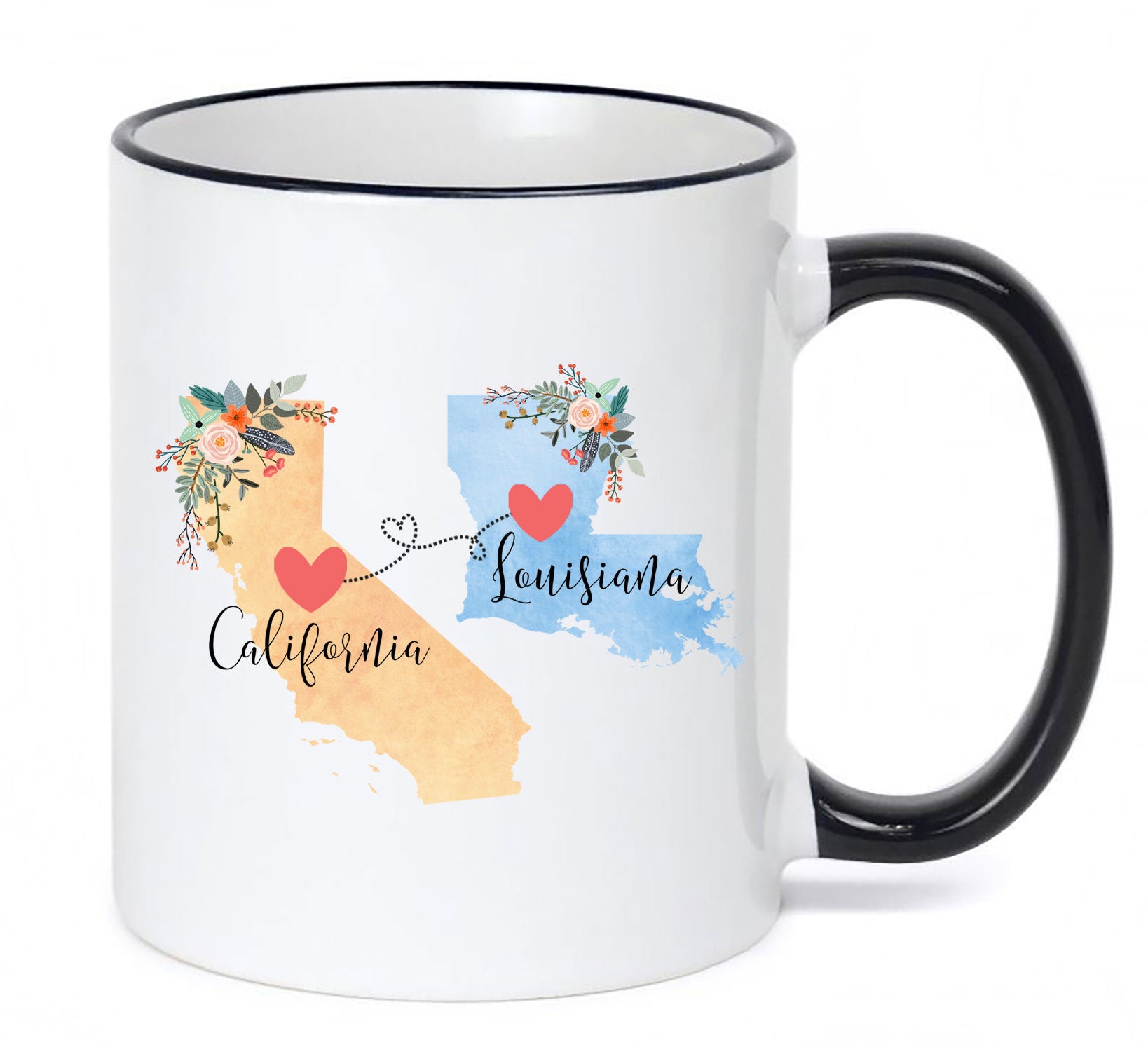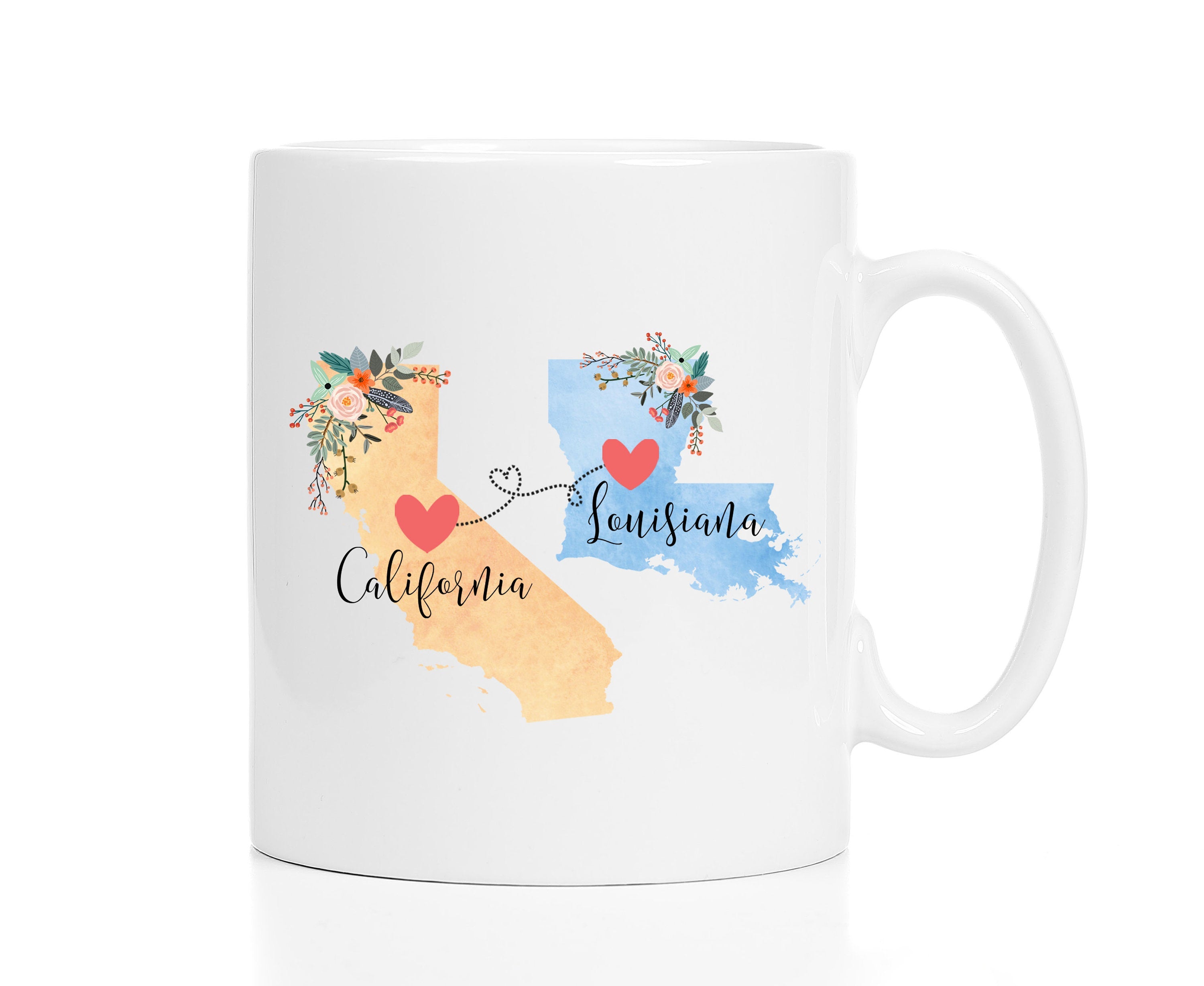 **No Delivery Dates Are Guaranteed. All shipping carriers are currently experiencing delays and transit times can be longer than normal. As a small business, we appreciate your patience and understanding that these circumstances are something that is out of our control. By purchasing this listing you are agreeing that you understand that the shipping date estimation may not be accurate.**California Louisiana Mug / Louisiana California Mug / California to Louisiana Gift / Louisiana to California Coffee Cup / 11 or 15 oz