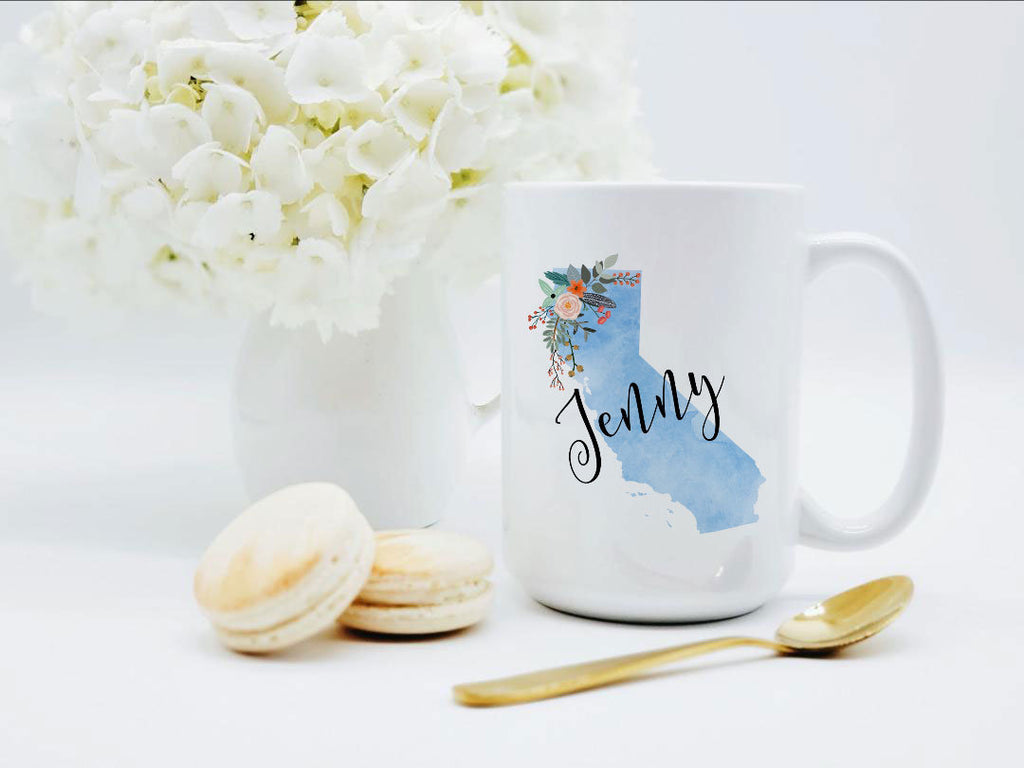 **No Delivery Dates Are Guaranteed. All shipping carriers are currently experiencing delays and transit times can be longer than normal. As a small business, we appreciate your patience and understanding that these circumstances are something that is out of our control. By purchasing this listing you are agreeing that you understand that the shipping date estimation may not be accurate.**California Mug / Personalized Mug / Custom State Mug / Friend Gift / California Gift / 11 or 15 oz / Homesick Gift / Moving Gift