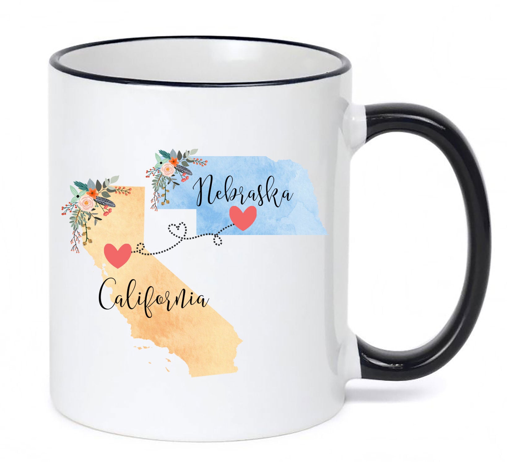 **No Delivery Dates Are Guaranteed. All shipping carriers are currently experiencing delays and transit times can be longer than normal. As a small business, we appreciate your patience and understanding that these circumstances are something that is out of our control. By purchasing this listing you are agreeing that you understand that the shipping date estimation may not be accurate.**California Nebraska Mug / Nebraska California Mug / California to Nebraska Gift / Nebraska to California Gift 11 or 15 oz