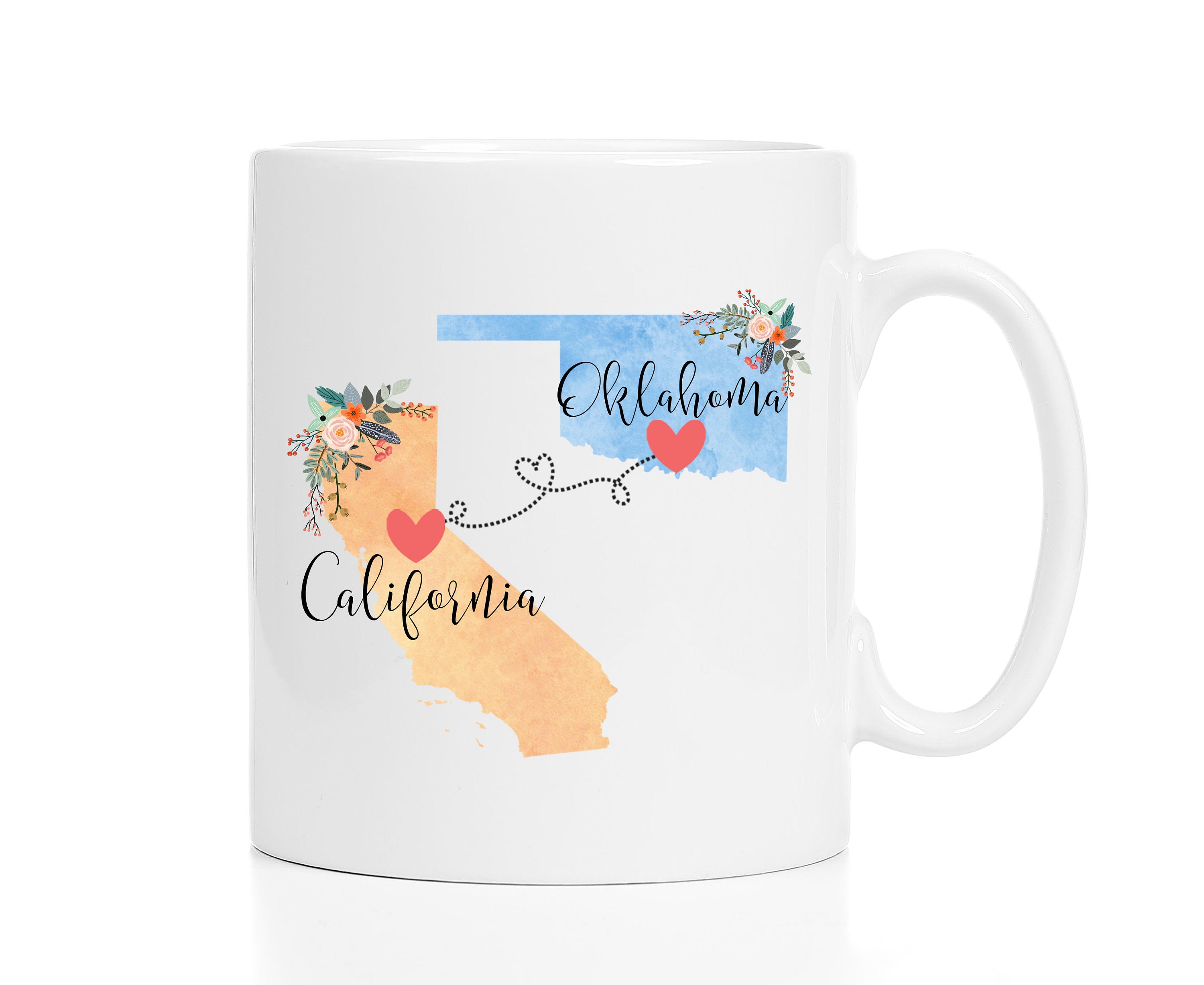 **No Delivery Dates Are Guaranteed. All shipping carriers are currently experiencing delays and transit times can be longer than normal. As a small business, we appreciate your patience and understanding that these circumstances are something that is out of our control. By purchasing this listing you are agreeing that you understand that the shipping date estimation may not be accurate.**California Oklahoma Mug / Oklahoma California Mug / College Student Going Away/Going Away Gift/College Student Gift / 11 or 15 oz