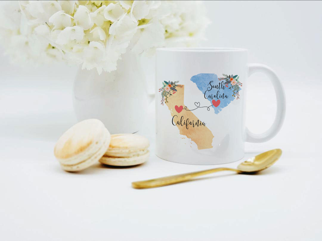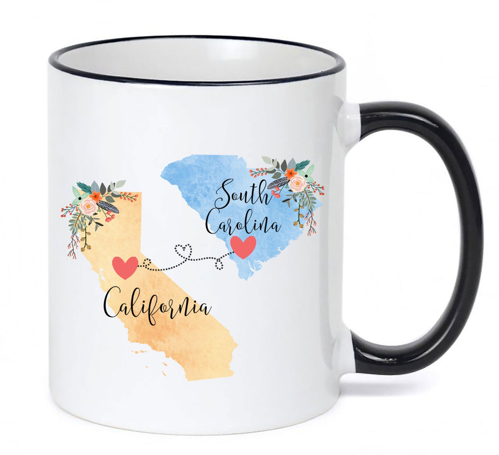 **No Delivery Dates Are Guaranteed. All shipping carriers are currently experiencing delays and transit times can be longer than normal. As a small business, we appreciate your patience and understanding that these circumstances are something that is out of our control. By purchasing this listing you are agreeing that you understand that the shipping date estimation may not be accurate.**California South Carolina Mug / South Carolina California Mug / California to South Carolina Gift / Coffee Mug Coffee Cup / 11 or 15 oz