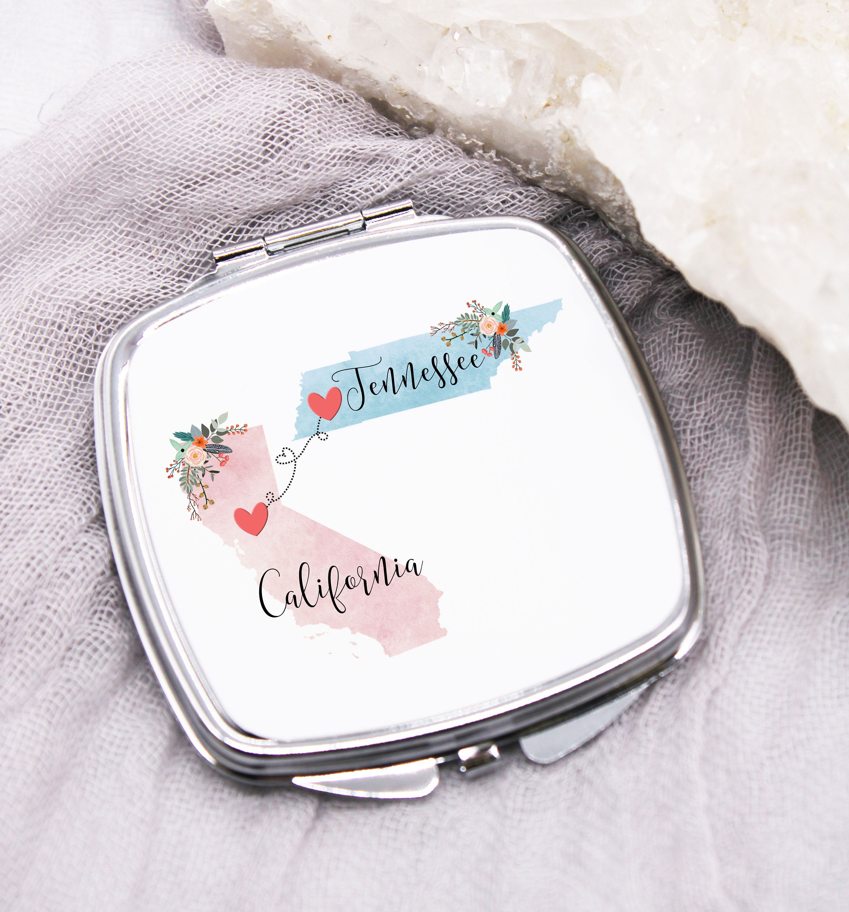 This California and Tennessee purse mirror is the perfect gift for a long-distance friend or family member, as an adorable reminder of your close relationship!