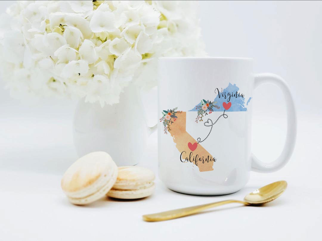 **No Delivery Dates Are Guaranteed. All shipping carriers are currently experiencing delays and transit times can be longer than normal. As a small business, we appreciate your patience and understanding that these circumstances are something that is out of our control. By purchasing this listing you are agreeing that you understand that the shipping date estimation may not be accurate.**California Virginia Mug / Virginia California Mug / California to Virginia Gift / Virginia to California Gift / 11 or 15 oz