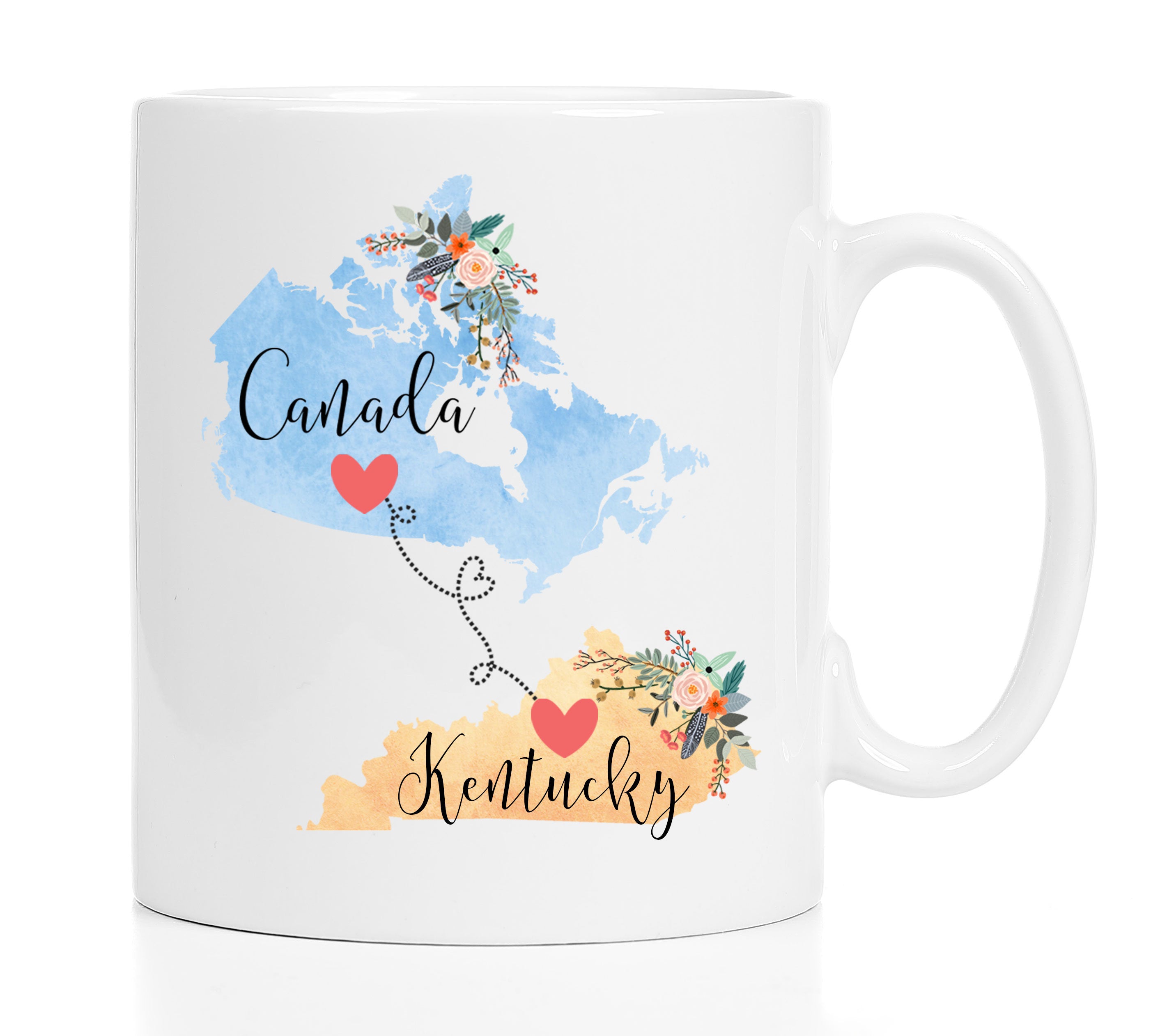 **No Delivery Dates Are Guaranteed. All shipping carriers are currently experiencing delays and transit times can be longer than normal. As a small business, we appreciate your patience and understanding that these circumstances are something that is out of our control. By purchasing this listing you are agreeing that you understand that the shipping date estimation may not be accurate.**Canada Kentucky Mug / Kentucky Canada Mug / Kentucky to Canada Gift / Canada to Kentucky Gift / Moving to Canada / 11 or 15 oz