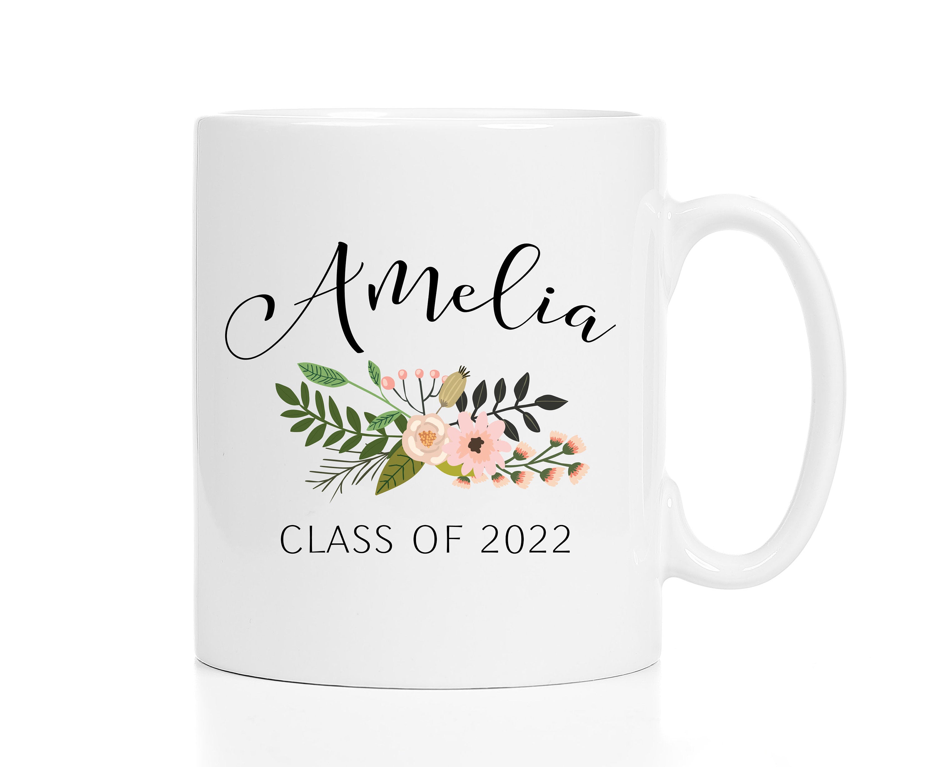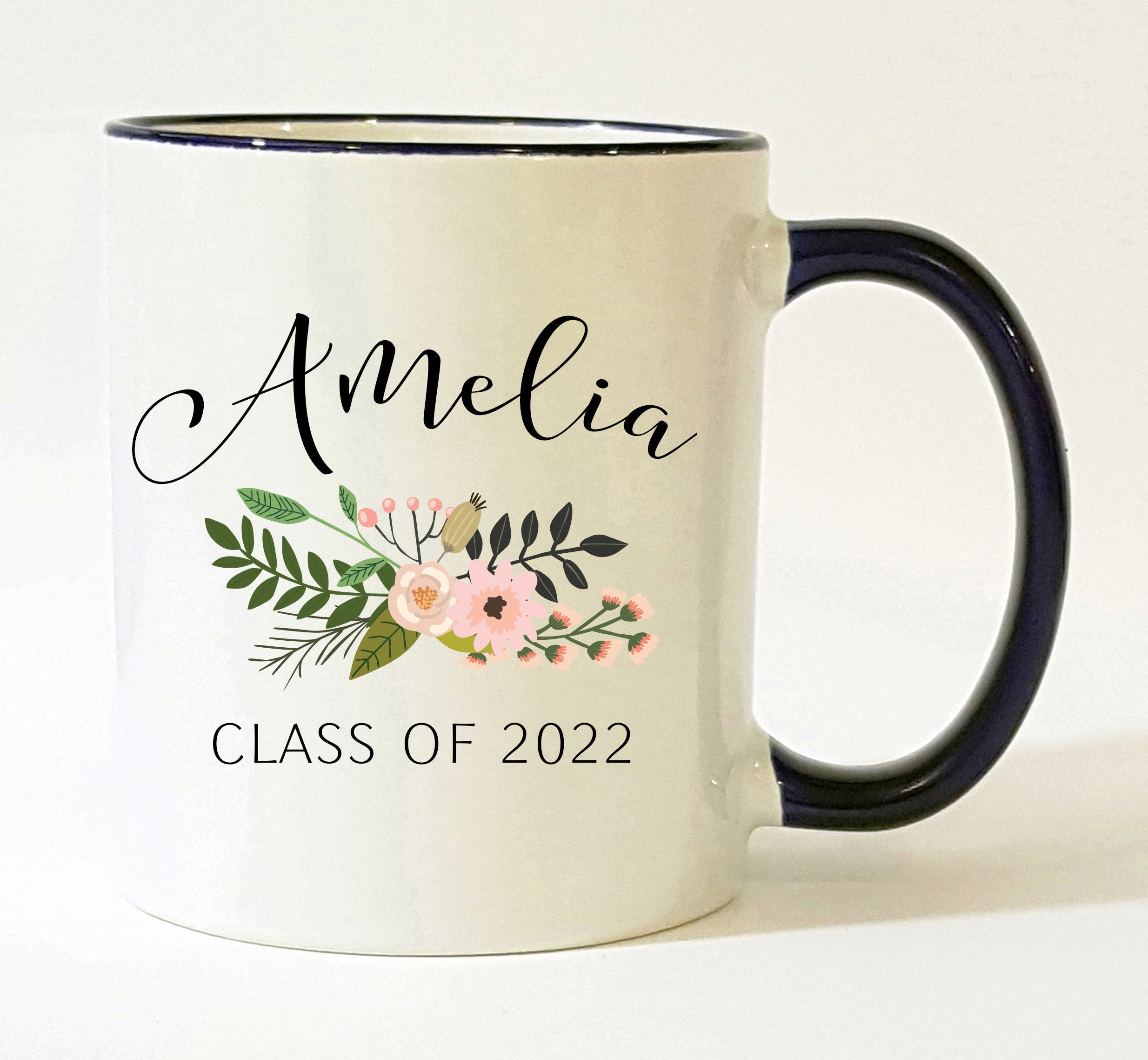 **No Delivery Dates Are Guaranteed. All shipping carriers are currently experiencing delays and transit times can be longer than normal. As a small business, we appreciate your patience and understanding that these circumstances are something that is out of our control. By purchasing this listing you are agreeing that you understand that the shipping date estimation may not be accurate.**Class of 2022 Mug / College Student Mug / Personalized Class of 2022 Mug / College Mug / Freshman Gift / College Student Gift / 11 or 15 oz Gorgeous floral mug, with your choice of name. I can change the year to any year that suits you. Available in all white or with a black handle and rim. HOW TO ORDER: If you'd like it customized, enter the name you'd like in the "notes to seller" at checkout. Also enter the year if you would like to change it. If you have any difficulty, simply send me the name in a convo. Note that no proof will be sent. This mug comes in 11 and 15 oz. Dishwasher and microwave safe. Design will be placed on both sides of the mug. **Send me a convo if you are interested in a bulk order so I can save you money on shipping!** Would you like a custom mug? Purchase this listing: https://www.etsy.com/listing/253308461/custom-mug-11-or-15-oz-mug-personalized Mad Kitty Mugs also has prints. Check out our other shop, Mad Kitty Media, where you'll find custom gold foil prints and other wonderful wall art: https://www.etsy.com/shop/MadKittyMedia ***************************************************************************** We'll ship your mug via Priority mail in a sturdy box with biodegradable peanuts and plenty of protective packaging.
