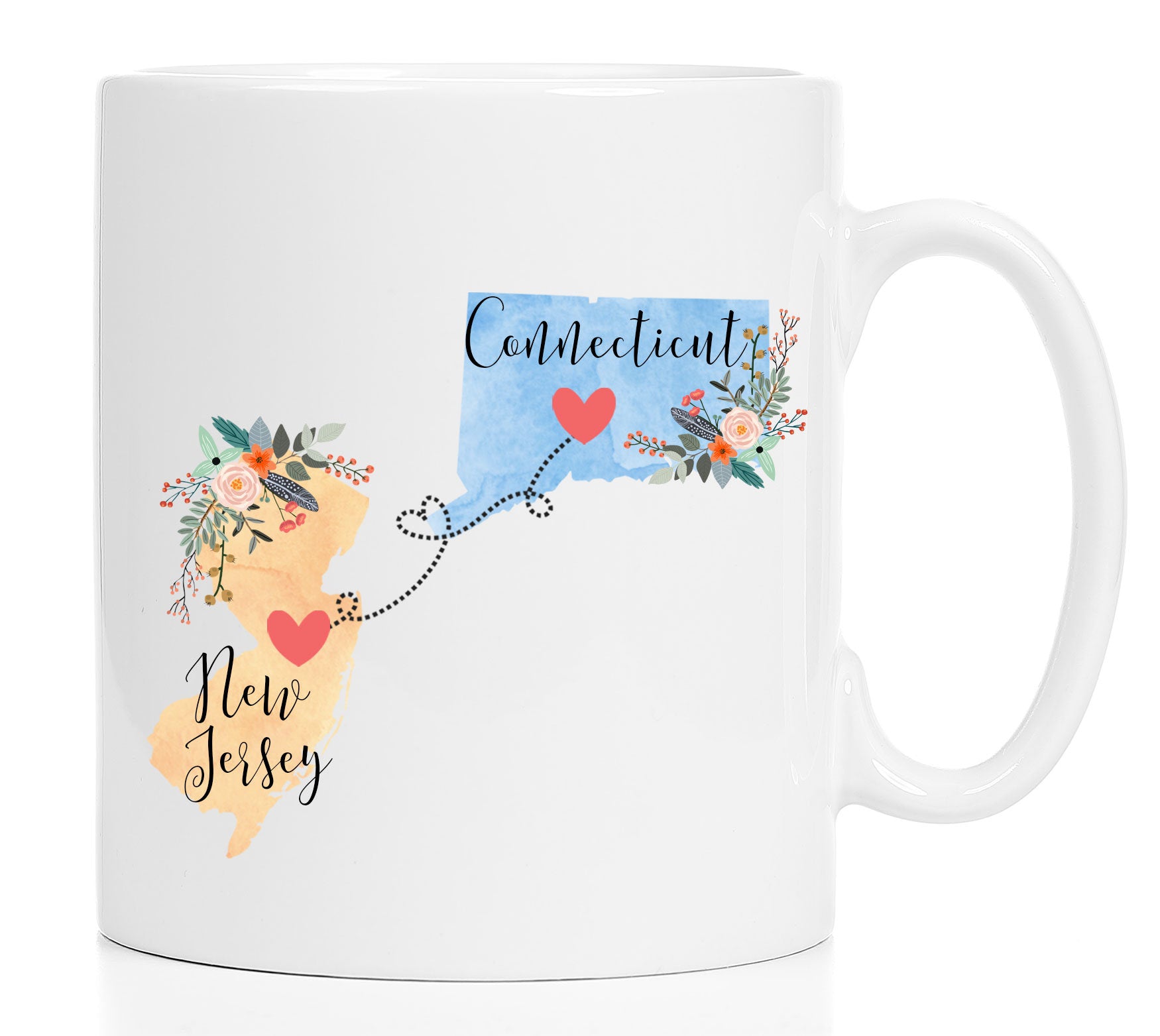**No Delivery Dates Are Guaranteed. All shipping carriers are currently experiencing delays and transit times can be longer than normal. As a small business, we appreciate your patience and understanding that these circumstances are something that is out of our control. By purchasing this listing you are agreeing that you understand that the shipping date estimation may not be accurate.**Connecticut New Jersey Mug / New Jersey Connecticut Mug / New Jersey to Connecticut Gift / Connecticut to New Jersey Coffee Cup Present