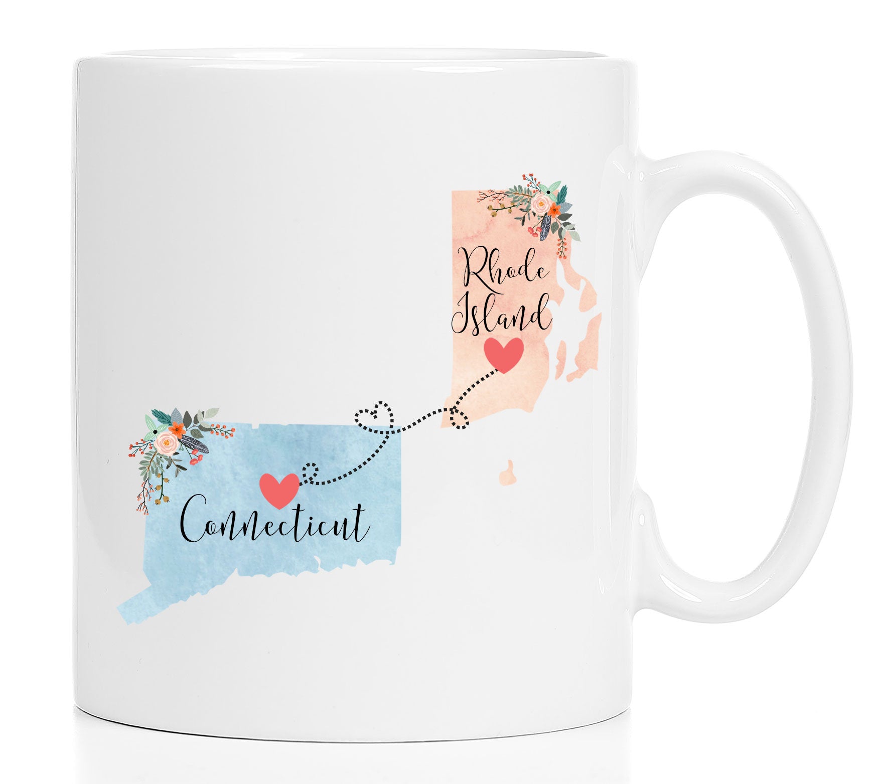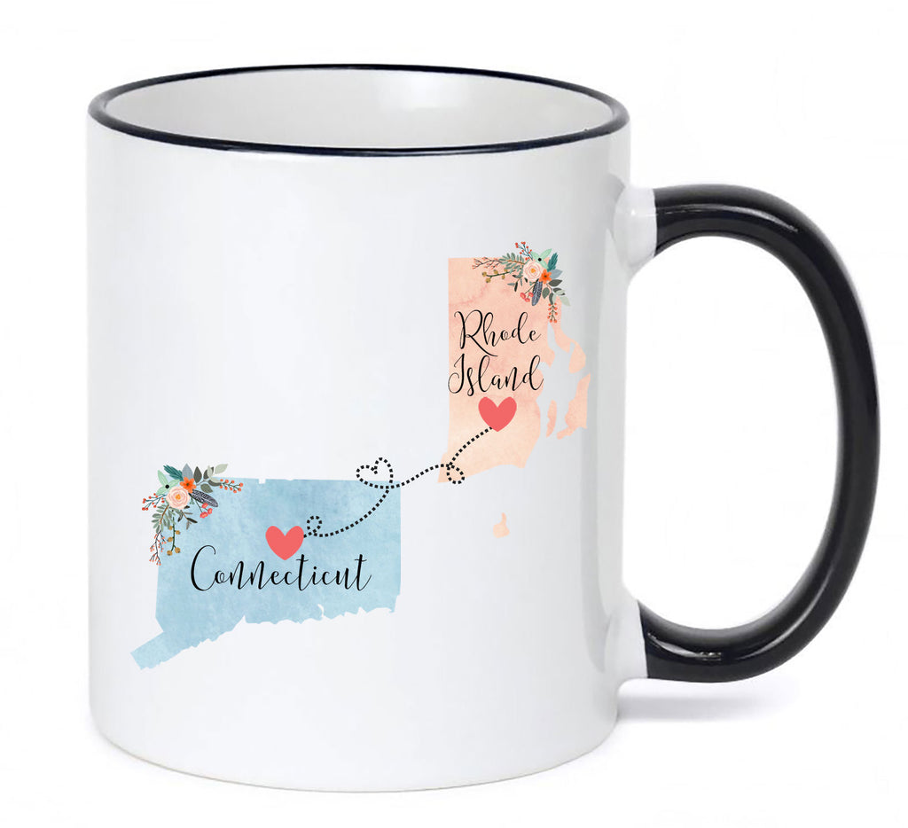 **No Delivery Dates Are Guaranteed. All shipping carriers are currently experiencing delays and transit times can be longer than normal. As a small business, we appreciate your patience and understanding that these circumstances are something that is out of our control. By purchasing this listing you are agreeing that you understand that the shipping date estimation may not be accurate.**Connecticut Rhode Island Mug / Rhode Island Connecticut Mug / Connecticut to Rhode Island Gift / RI to CT Cup / Hostess Gift 11 or 15 oz