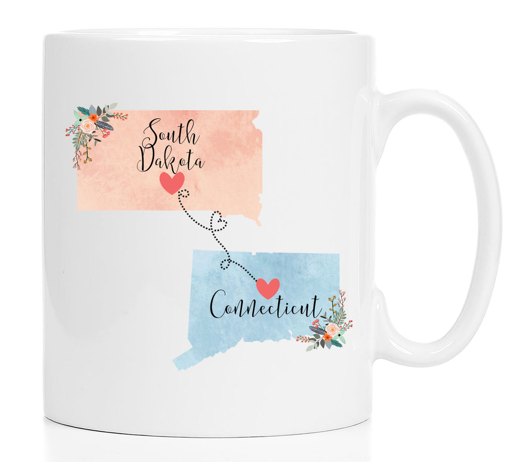 **No Delivery Dates Are Guaranteed. All shipping carriers are currently experiencing delays and transit times can be longer than normal. As a small business, we appreciate your patience and understanding that these circumstances are something that is out of our control. By purchasing this listing you are agreeing that you understand that the shipping date estimation may not be accurate.**Connecticut South Dakota Mug / South Dakota Connecticut Mug / Connecticut to South Dakota Gift / SD to CT Cup / Hostess Gift 11 or 15 oz