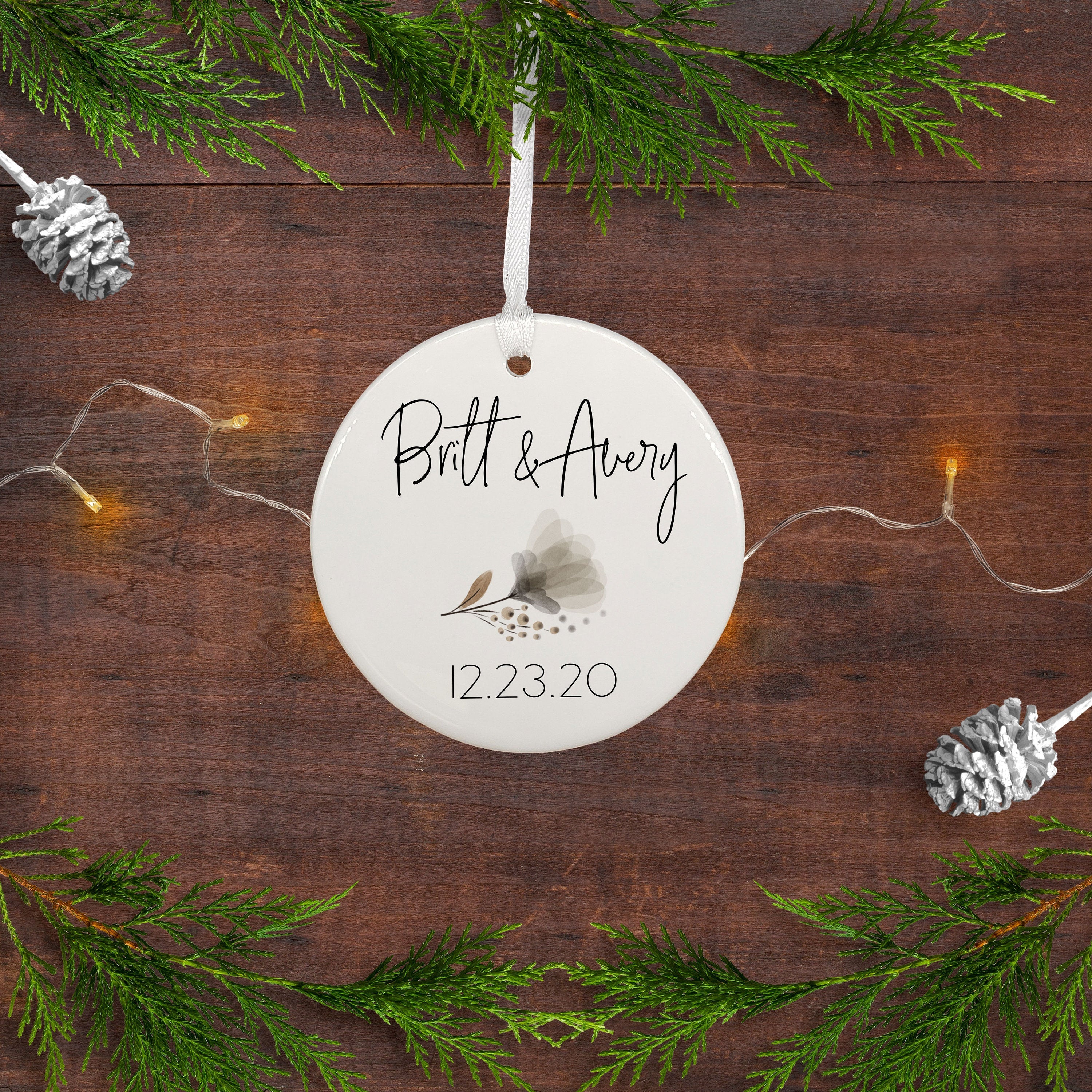 Couple's Ornament / DOUBLE SIDED Ornament / Keepsake Ornament / Engagement Ornament / Wedding Ornament / Personalized Wedding Gift